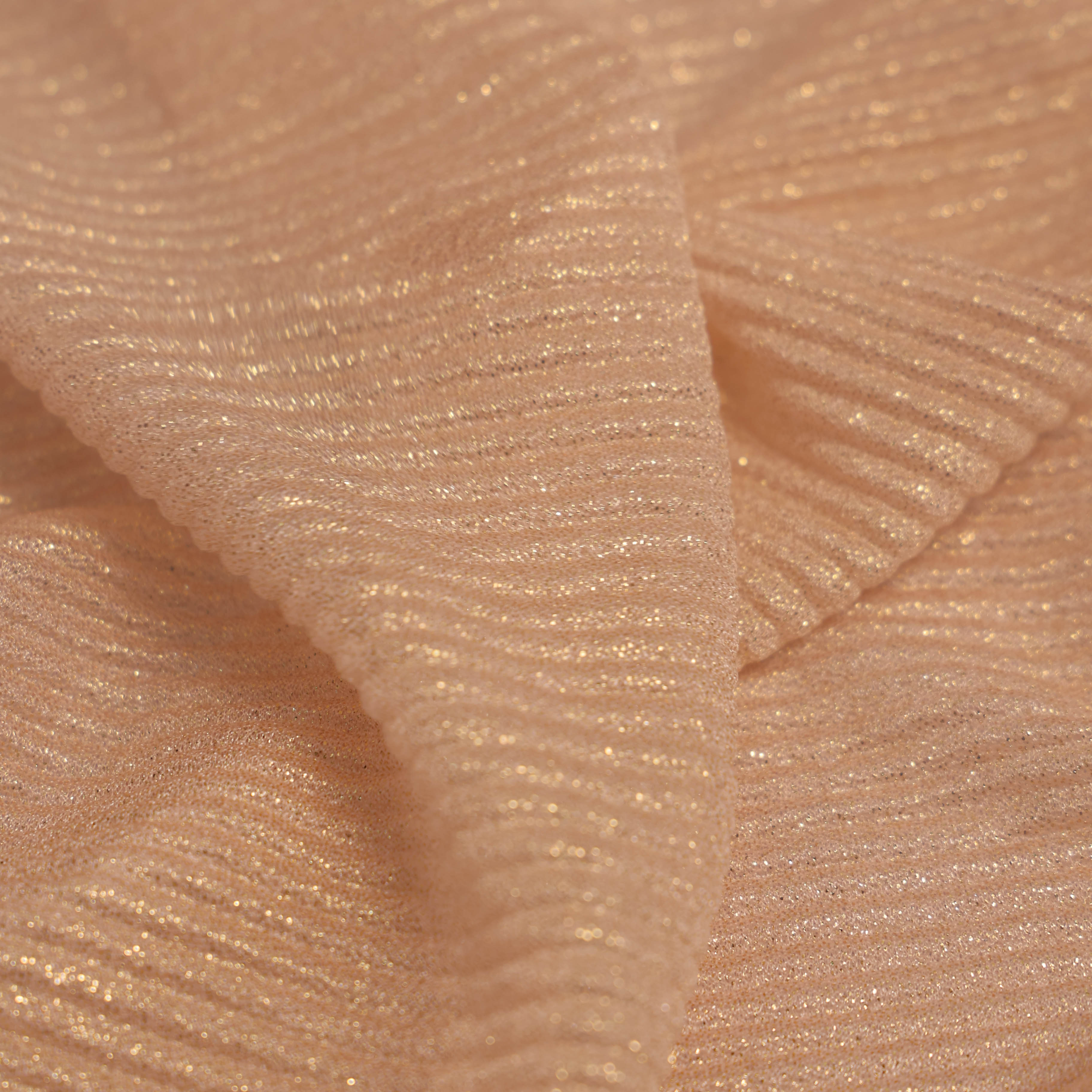 Luxurious pleated fabric with a soft velvet-like texture and a subtle shimmer finish. Perfect for elegant gowns, party wear, and contemporary outfits.
