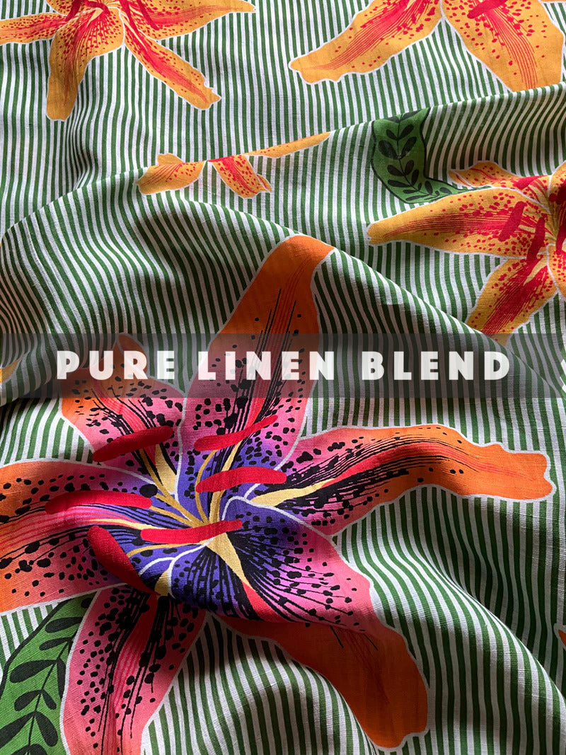 Stay cool and stylish this summer with our printed pure linen blend fabric, designed for effortless elegance and all-day comfort. Made from pure linen blend, this fabric offers a smooth, soft texture that feels light against the skin—ideal for the warm weather.