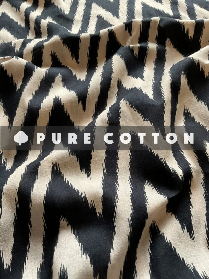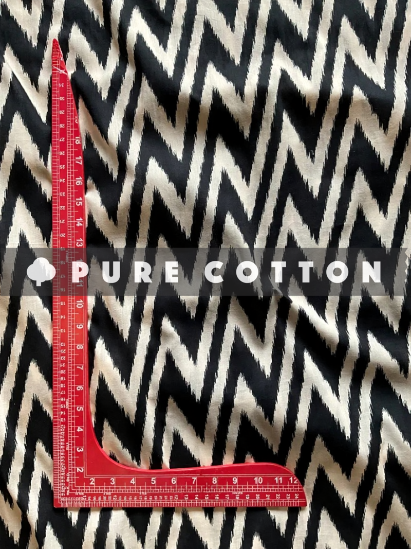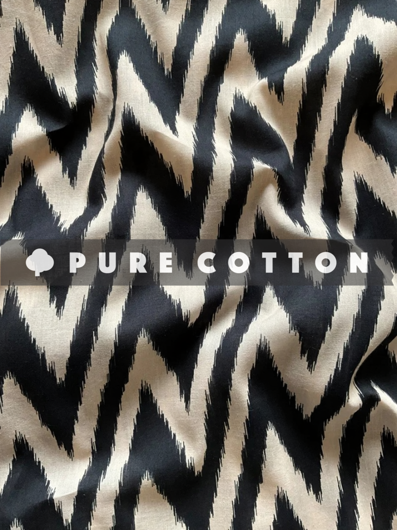 Black and White Zigzag Pattern Printed Pure Cotton Fabric