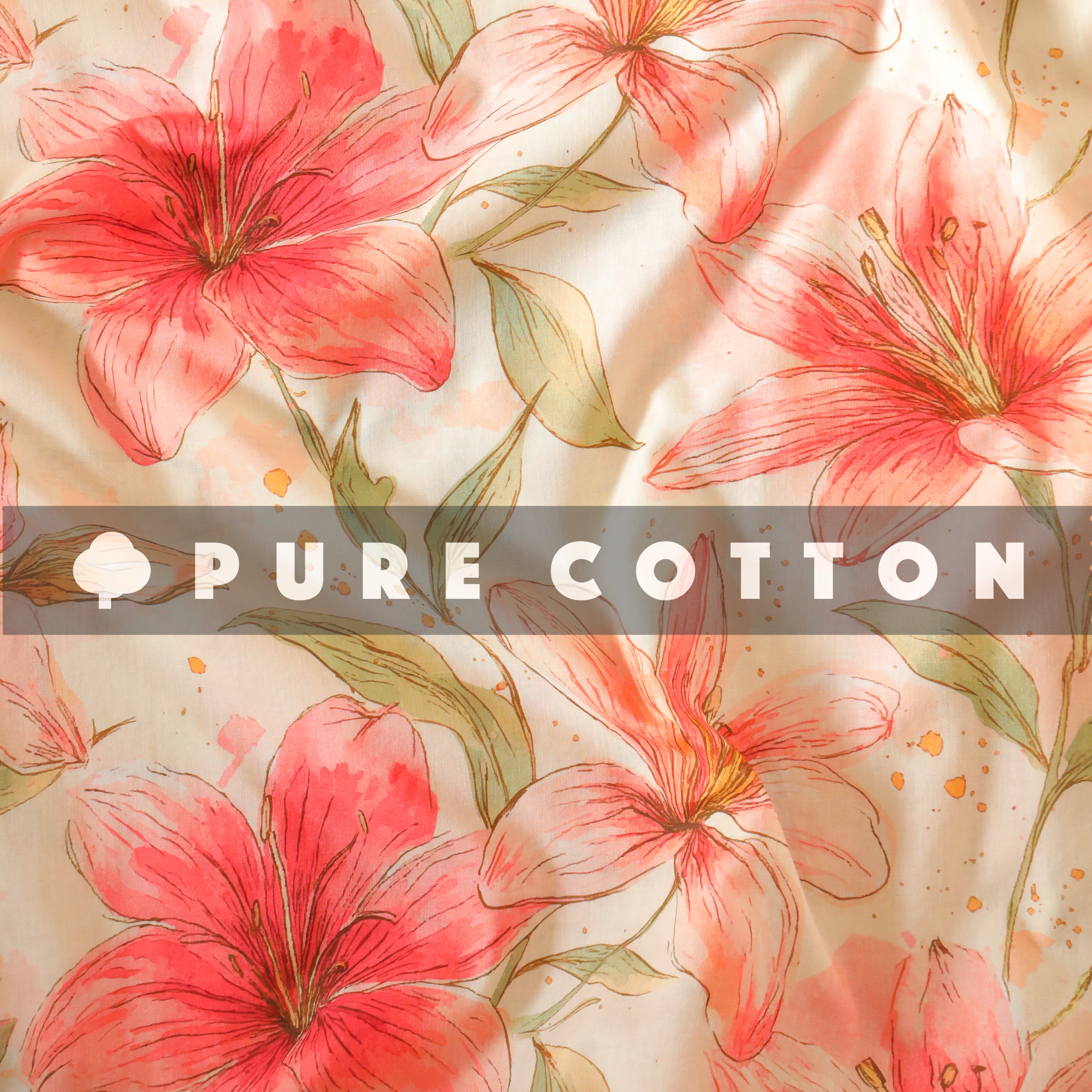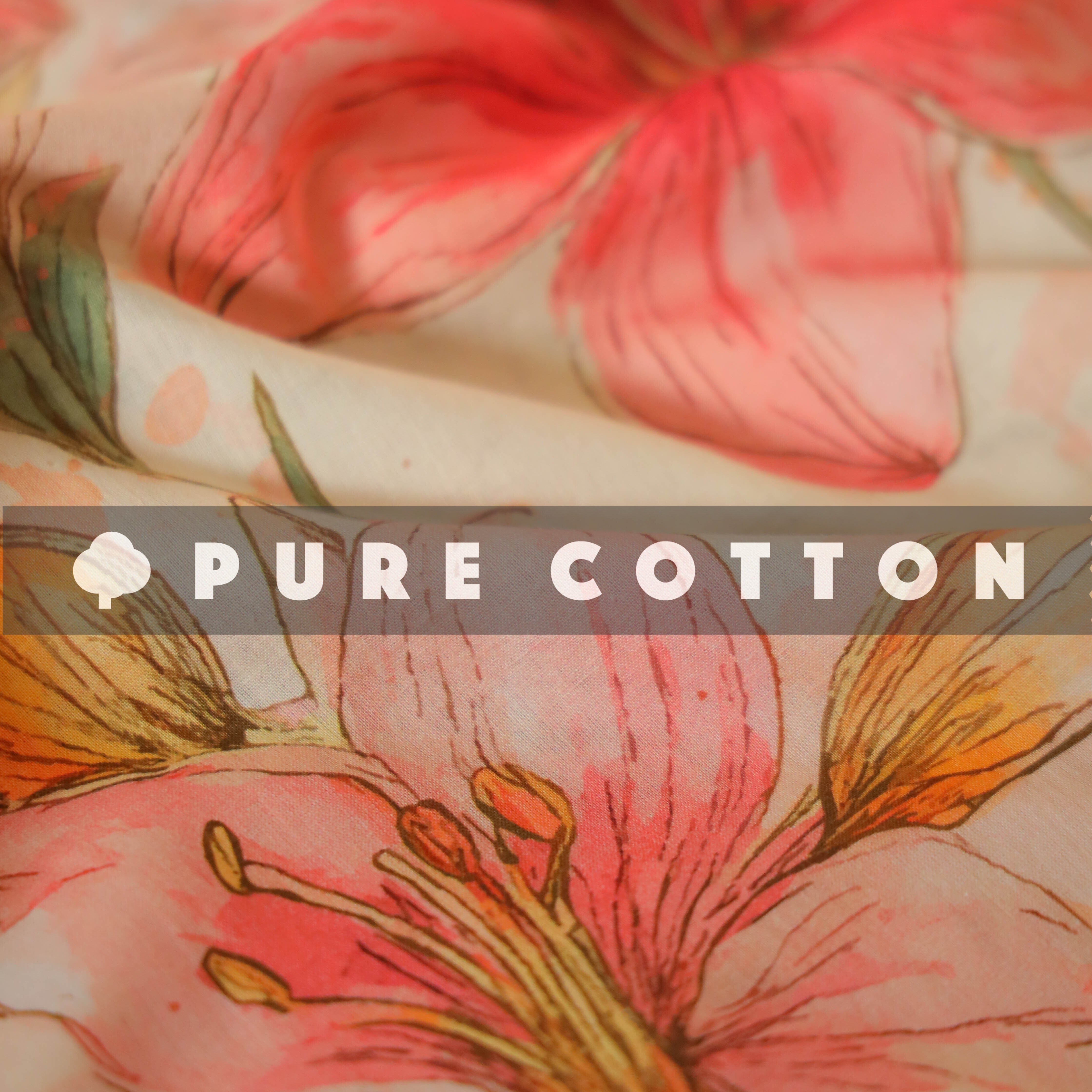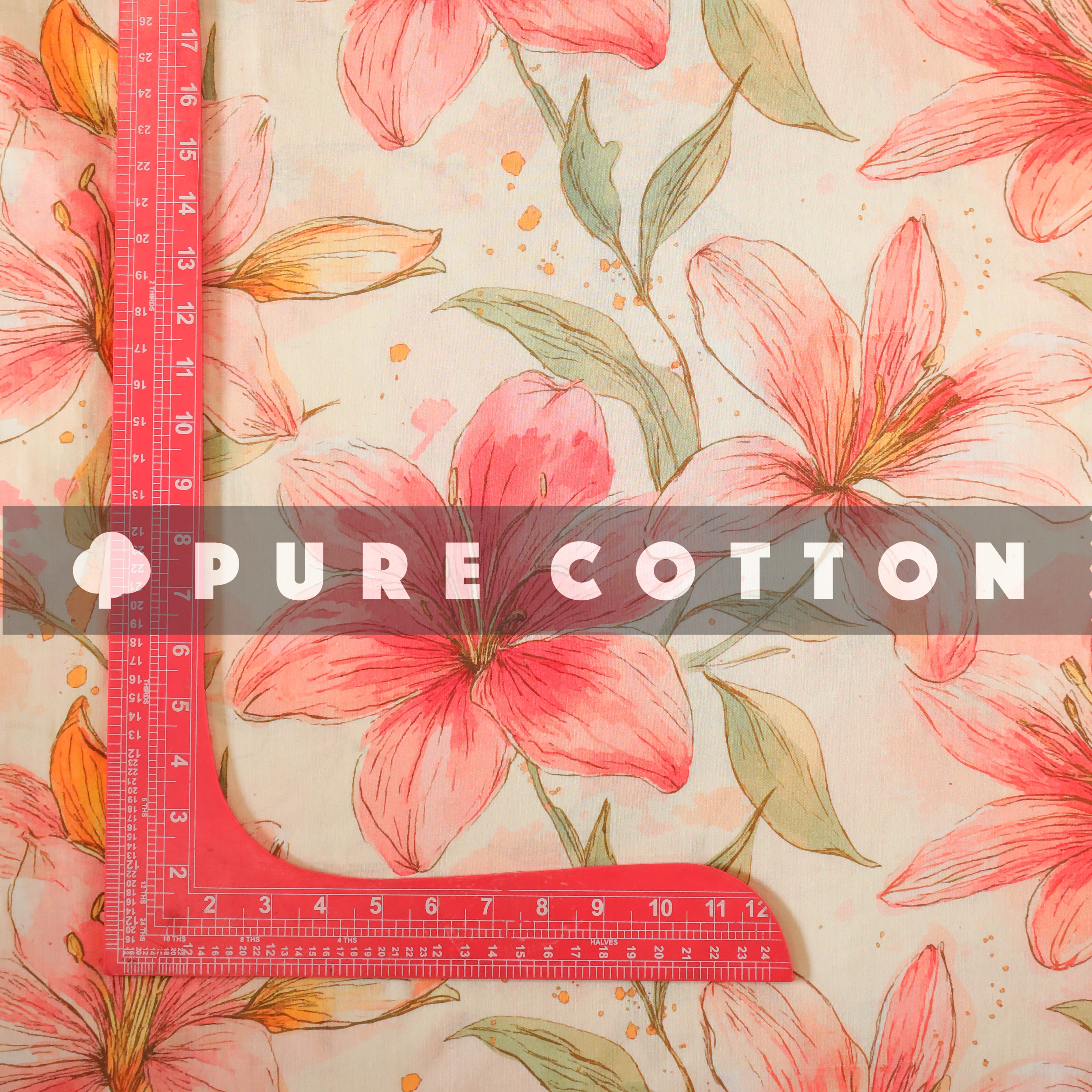 Cream Floral Pattern Printed Pure Cotton Fabric