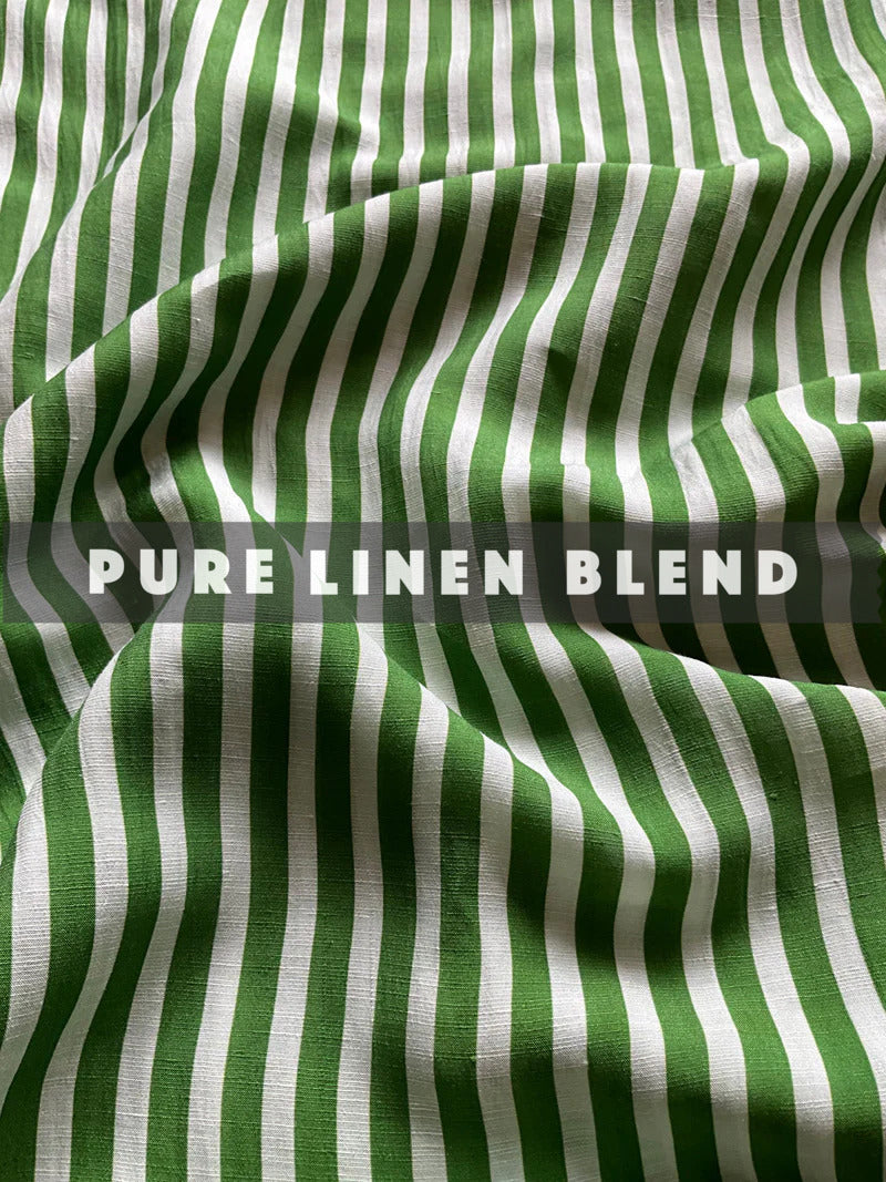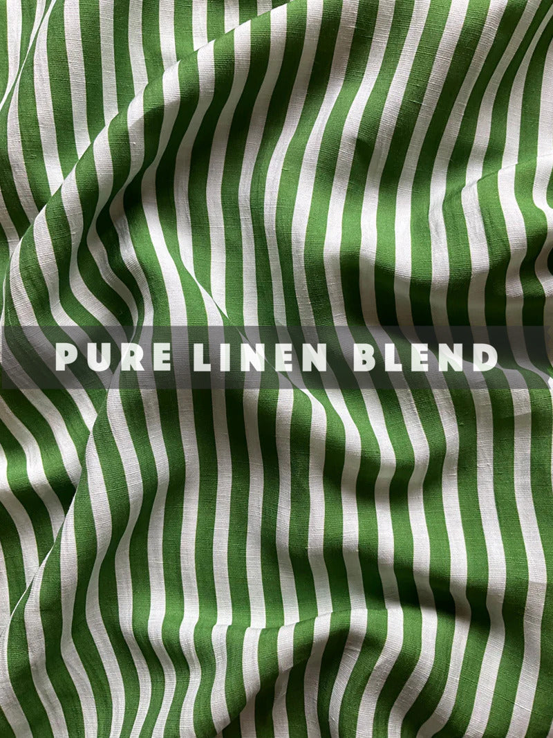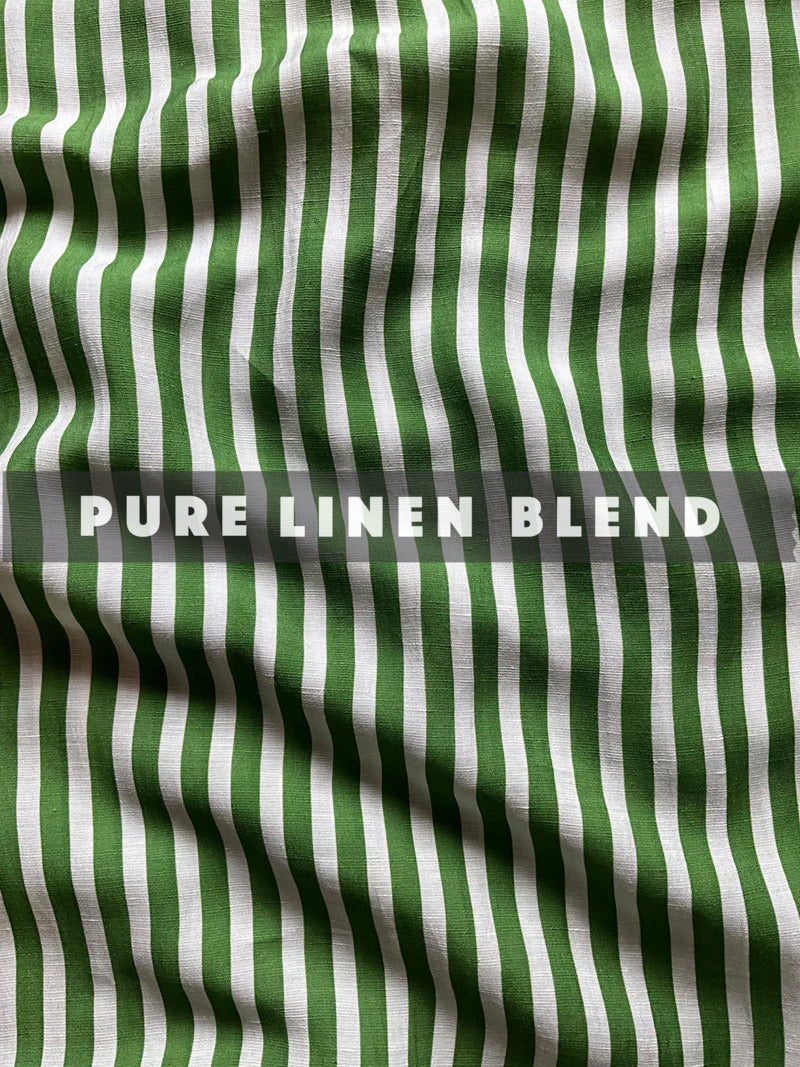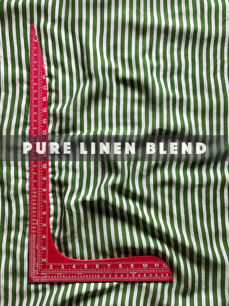 Green Stripe Pattern Printed Pure Linen Blend Fabric