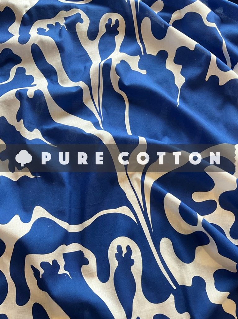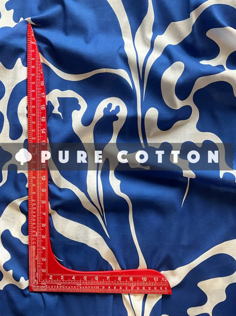Indigo Fluid Floral Pattern Printed Pure Cotton Fabric