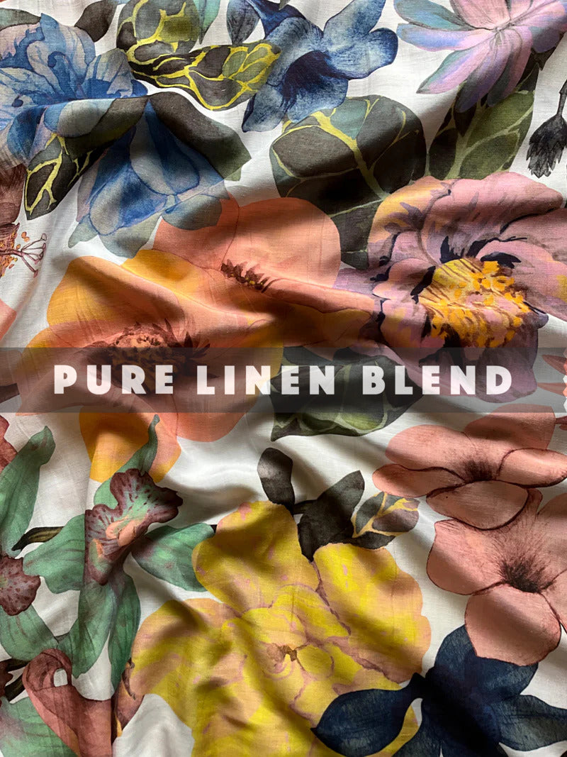 Stay cool and stylish this summer with our printed pure linen blend fabric, designed for effortless elegance and all-day comfort. Made from pure linen blend, this fabric offers a smooth, soft texture that feels light against the skin—ideal for the warm weather.