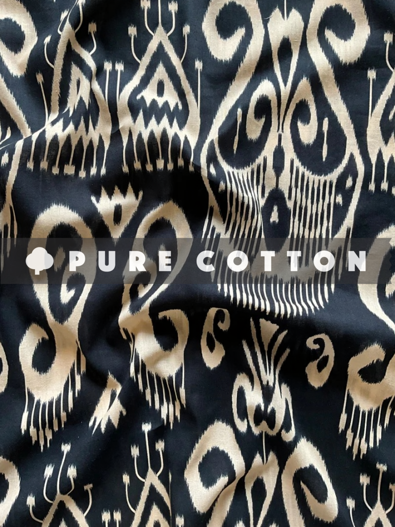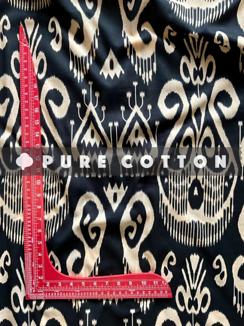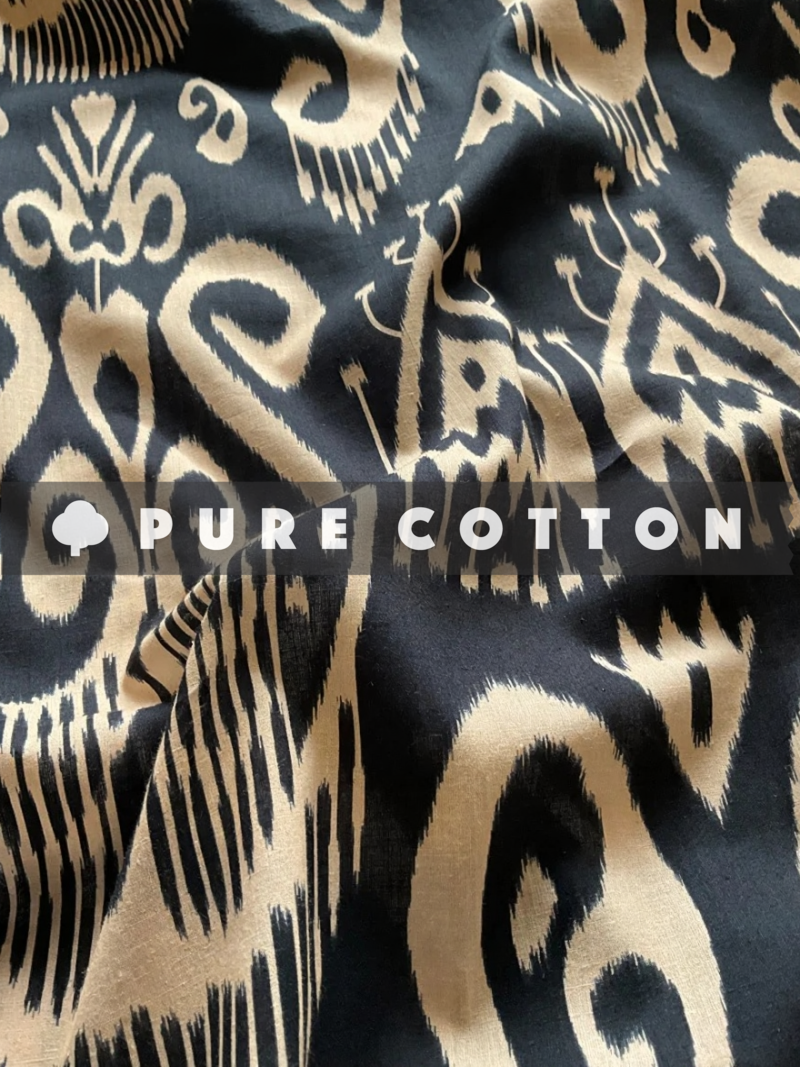 Pale Gold Ikat Inspired Pattern Printed Pure Cotton Fabric
