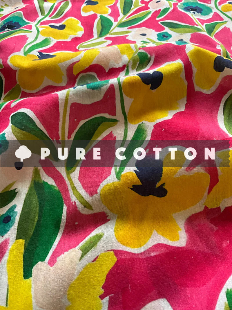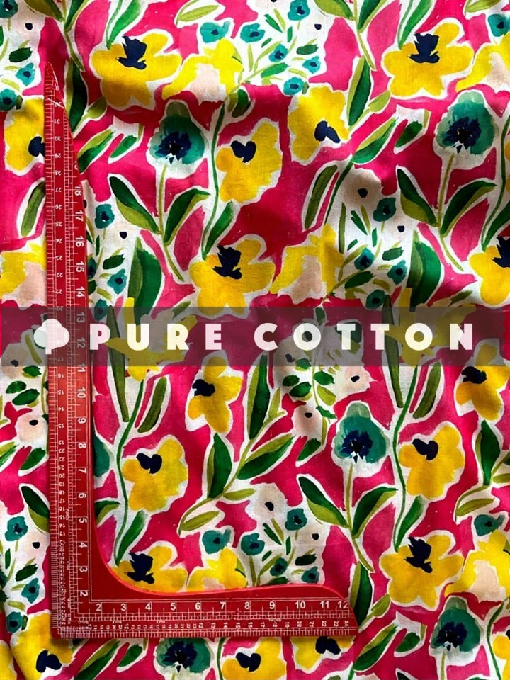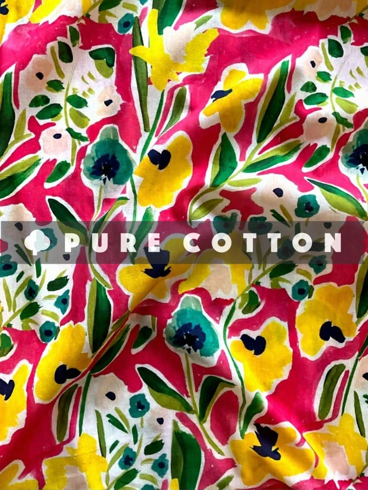 Radiant Floral Pattern Printed Pure Cotton Fabric