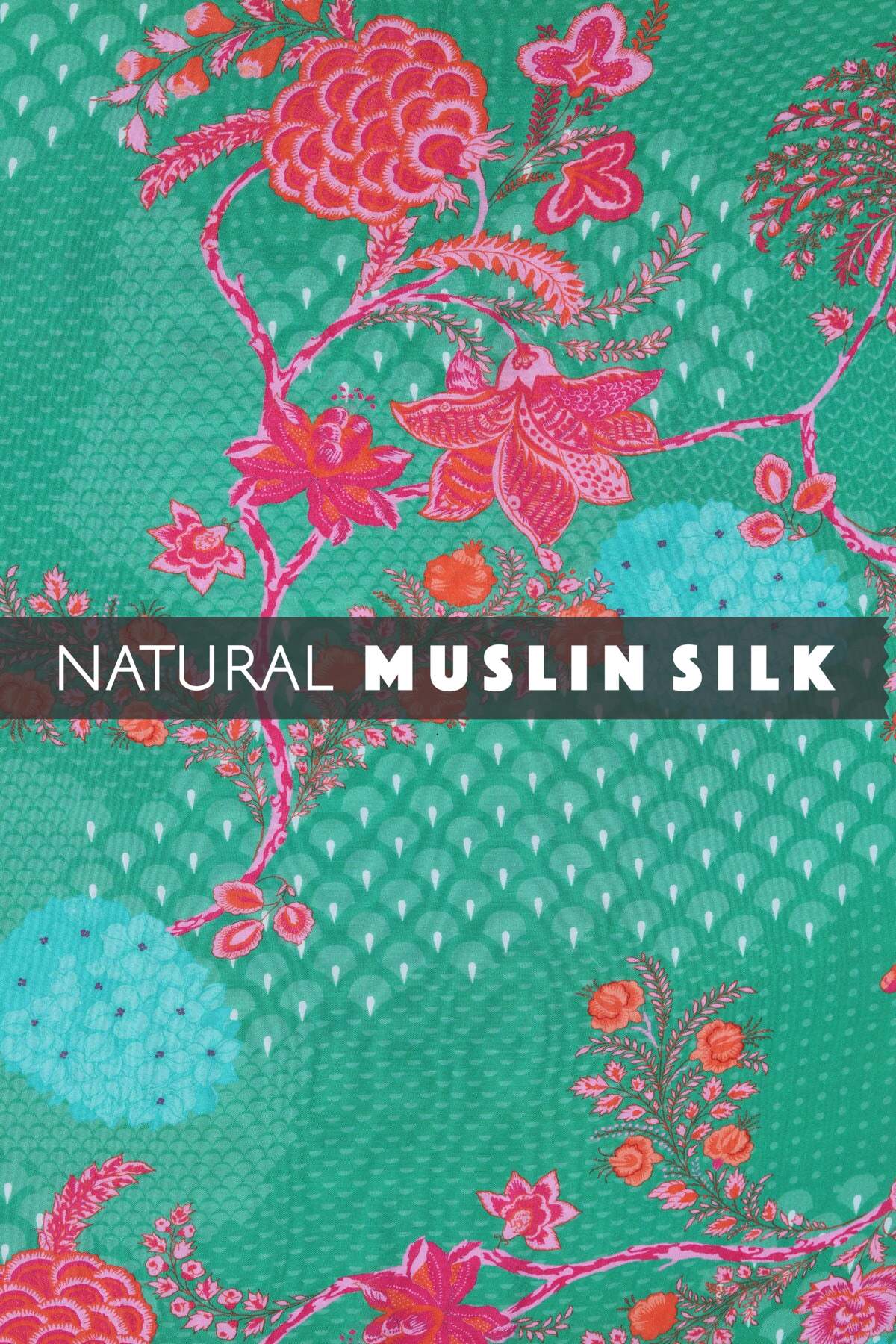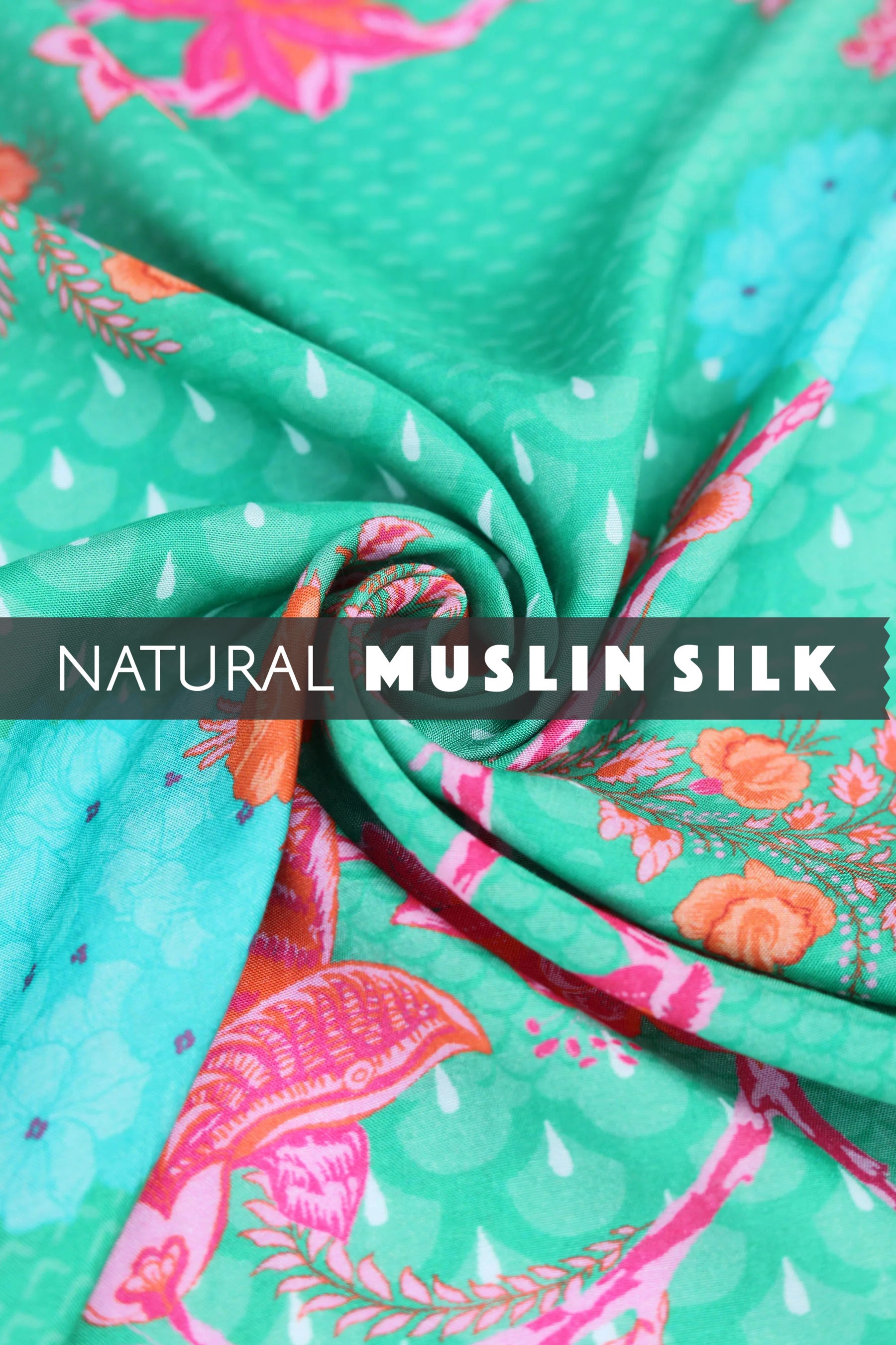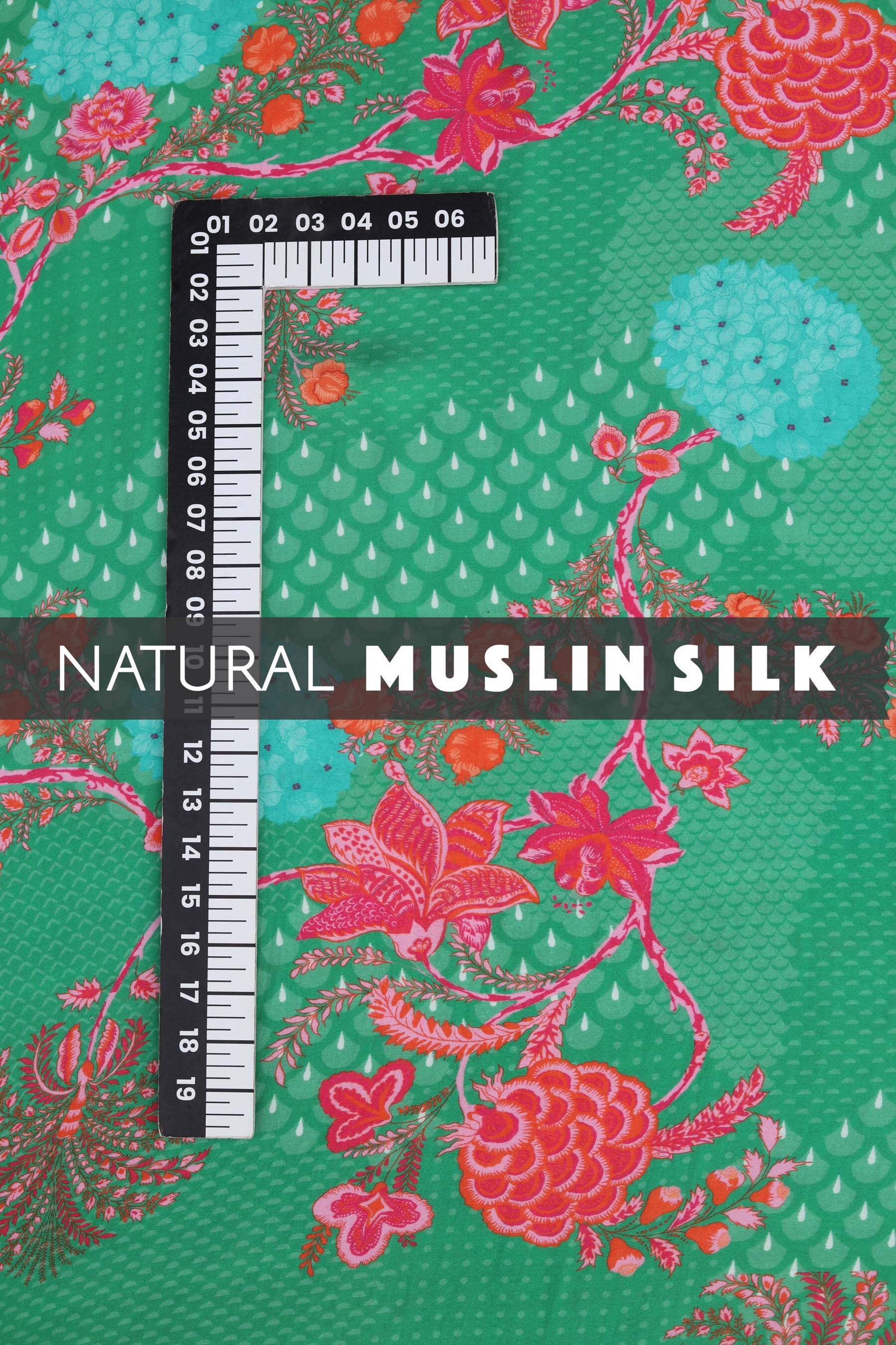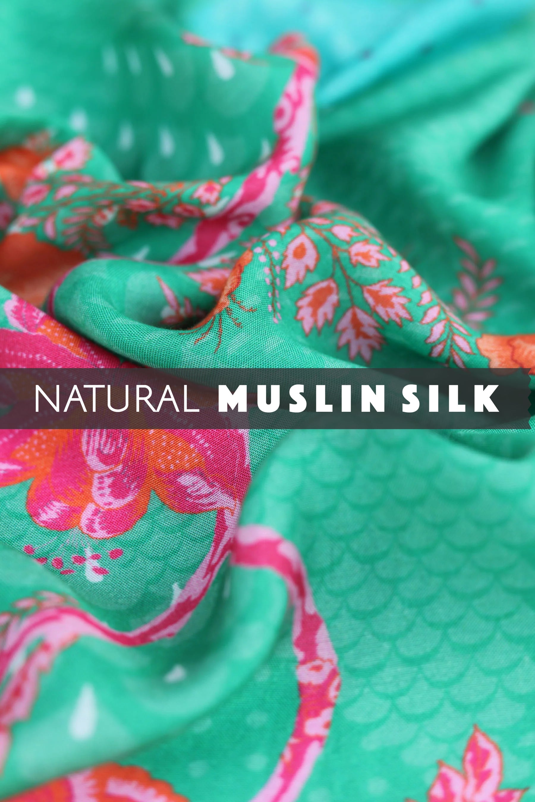 Immerse yourself in the tranquility of nature with the Meadow Green All Over Flower Print Natural Muslin Silk Fabric. Soft, smooth, and durable, it features a natural sheen and breathability, offering a luxurious fall-feel perfect for festive occasions. Its sustainable, nature-based essence and contemporary charm make it a versatile choice for shirts, kurtis, kaftans, co-ords, dresses, suits, tops, and tunics.