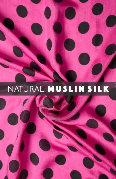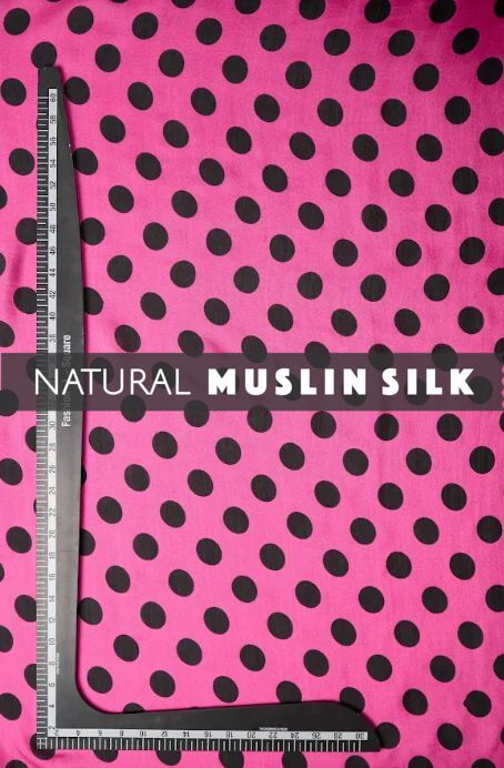 Introducing our Pink-Black Polka Dot Pattern Printed Natural Muslin Silk Fabric, a versatile masterpiece that embodies elegance, sustainability, and contemporary flair. Crafted with meticulous attention to detail, this fabric boasts a soft, smooth texture, ensuring comfort throughout the day. Its durability ensures longevity, while the natural sheen adds a touch of sophistication to any ensemble.