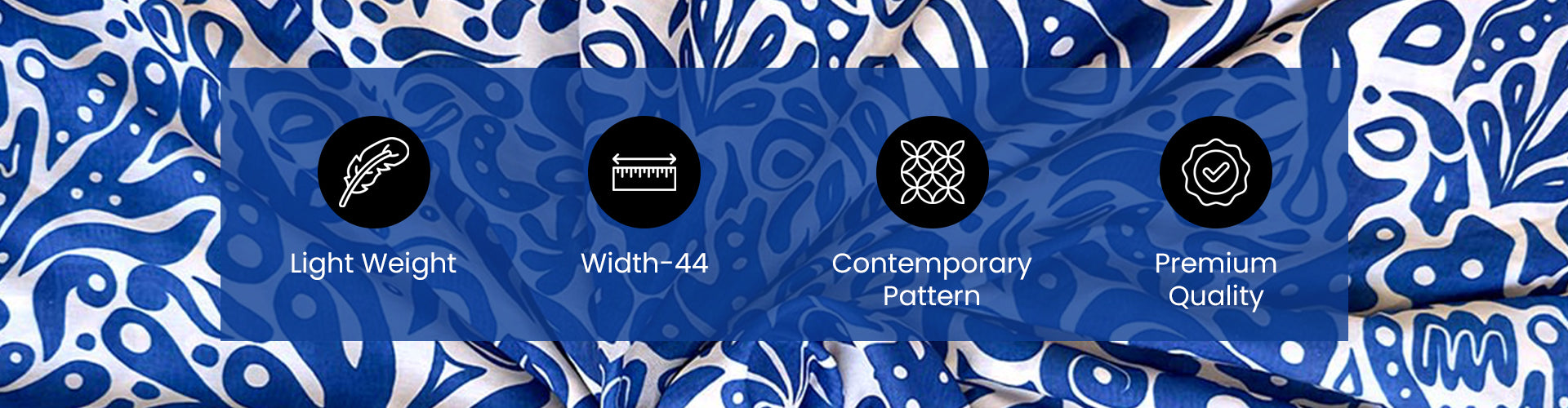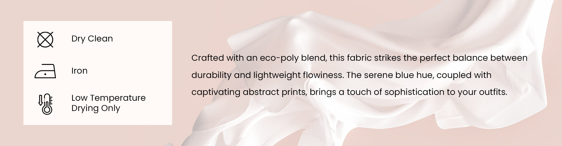 Immerse yourself in the allure of our Blue Abstract Printed Muslin Fabric. Crafted with an eco poly blend, this fabric strikes the perfect balance between durability and lightweight flowiness. Its soft texture ensures a comfortable wearing experience, making it ideal for everyday wear. The serene blue hue, coupled with captivating abstract prints, brings a touch of sophistication to your outfits. Revel in the versatility and breathability of this fabric as you create stylish and effortlessly chic looks.