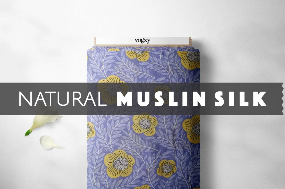 Crafted from natural muslin silk, this fabric embodies sophistication and durability, boasting a soft, smooth texture with a subtle sheen that adds a touch of luxury to any ensemble. Its breathable nature ensures comfort, making it ideal for festive wear and special occasions.