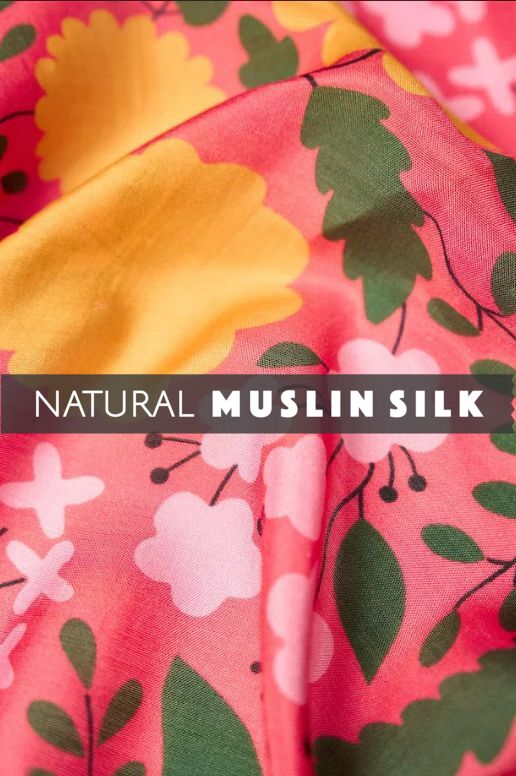 Introducing our vibrant Orange Big Flower Pattern With Pink Background Natural Muslin Silk Fabric! A fusion of boldness and elegance, this fabric is a celebration of style and sustainability.ย Feel the indulgence of its soft and smooth texture, crafted to provide a luxurious experience. Enhanced with natural sheen and durability, this fabric promises longevity without compromising on charm. Embrace its breathability, making it an ideal choice for festive occasions and everyday wear alike.
