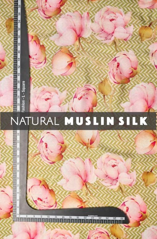 Introducing our captivating Pastel Color Rose With Zig Zag Background Pattern Printed Natural Muslin Silk Fabric! This fabric is a harmonious blend of elegance and sustainability, crafted to elevate your style with timeless charm.