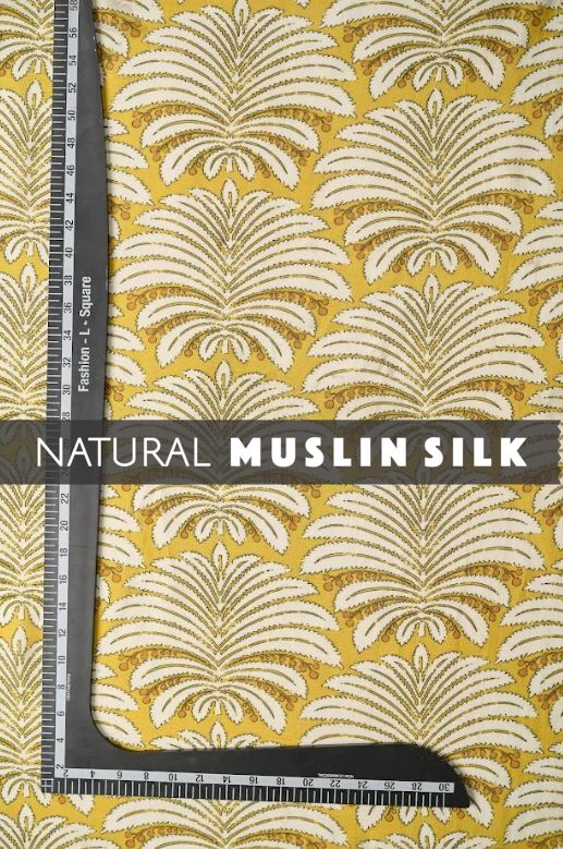 Introducing our radiant Pastel Yellow Color Leafy Pattern Printed Natural Muslin Silk Fabric! This fabric embodies a perfect blend of elegance and sustainability, promising comfort and style with every thread.