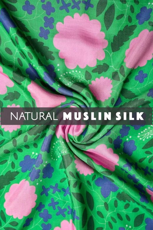 Introducing our exquisite Pink Big Flower Pattern With Green Background Natural Muslin Silk Fabric! Immerse yourself in the epitome of elegance and sustainability with this stunning creation. Feel the luxurious softness and smoothness of this fabric, carefully crafted to envelop you in comfort. With its natural sheen and durable construction, it promises enduring beauty with every wear. Embrace its breathability, making it an ideal choice for both festive occasions and everyday attire.