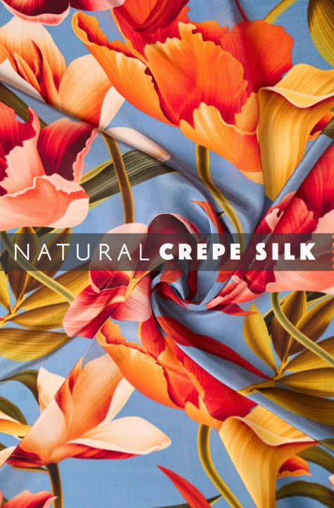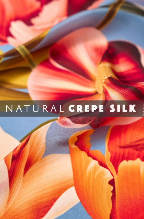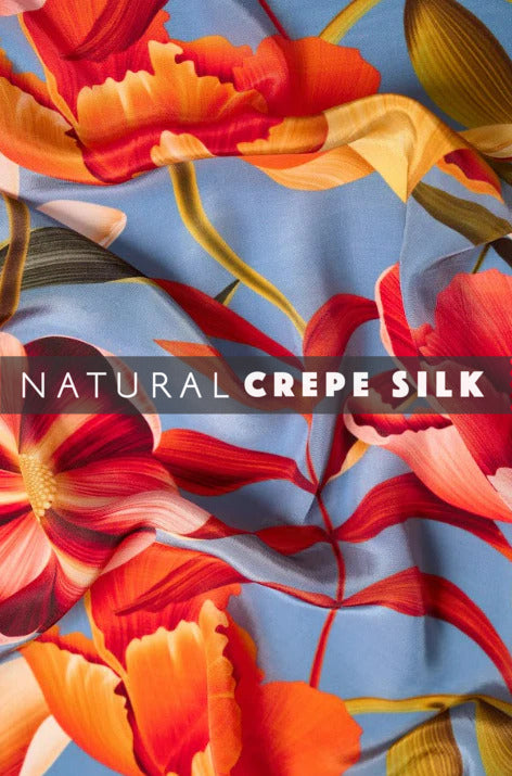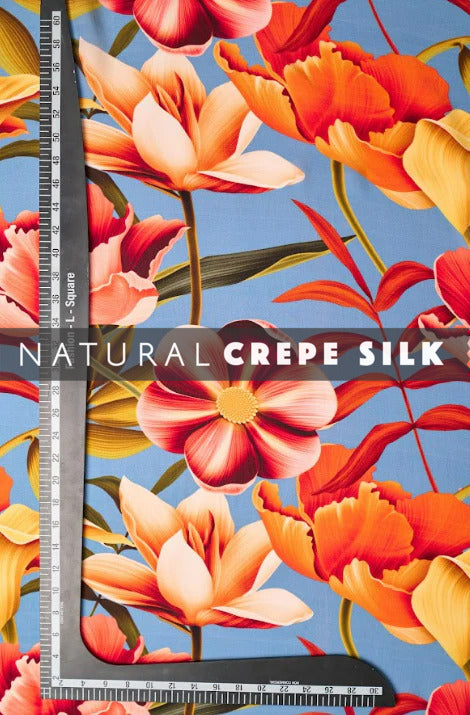 Introducing our Bold Floral Pattern Printed Natural Crepe Silk Fabric, where vibrant blooms meet luxurious texture. Carefully crafted, this fabric is a celebration of boldness and sophistication.