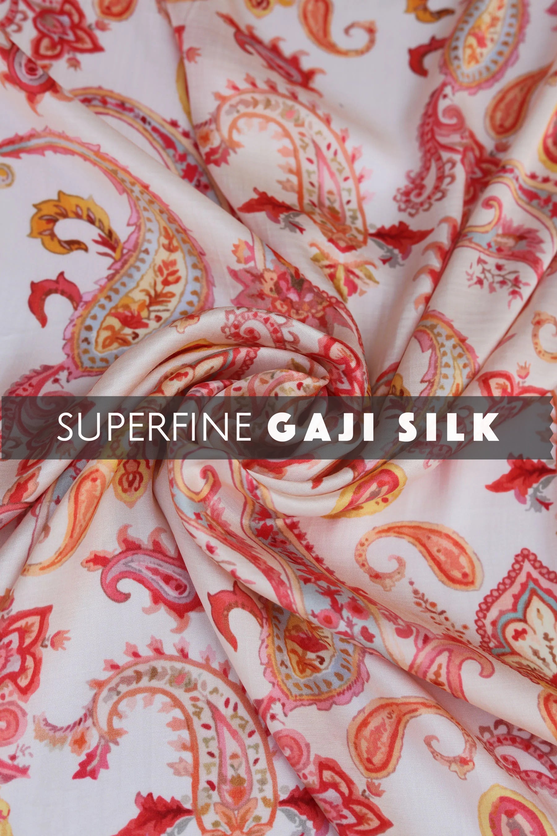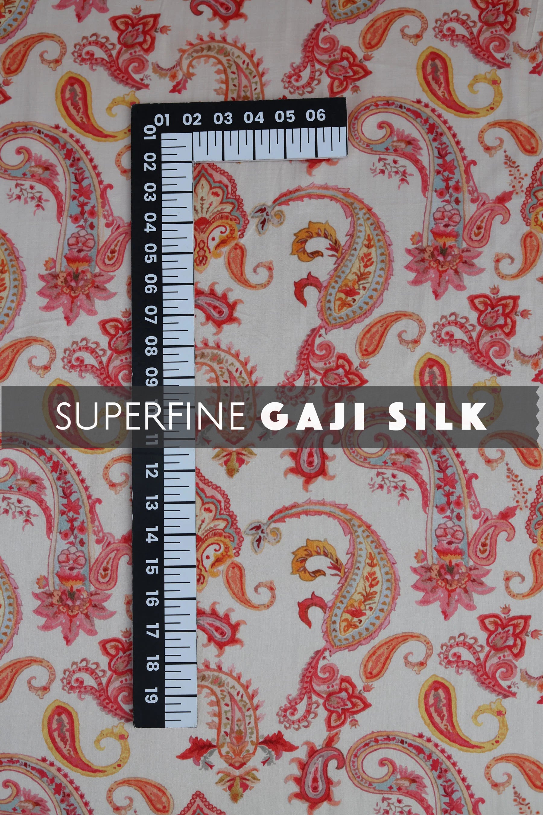 Cream Deco Paisley Printed Gaji Silk Fabric