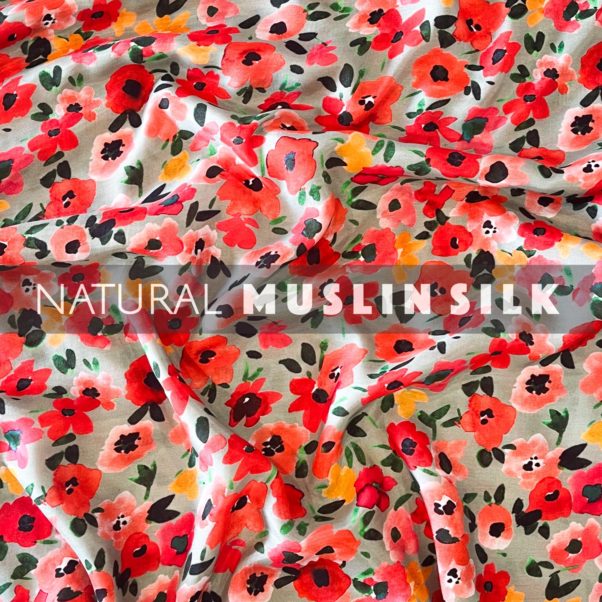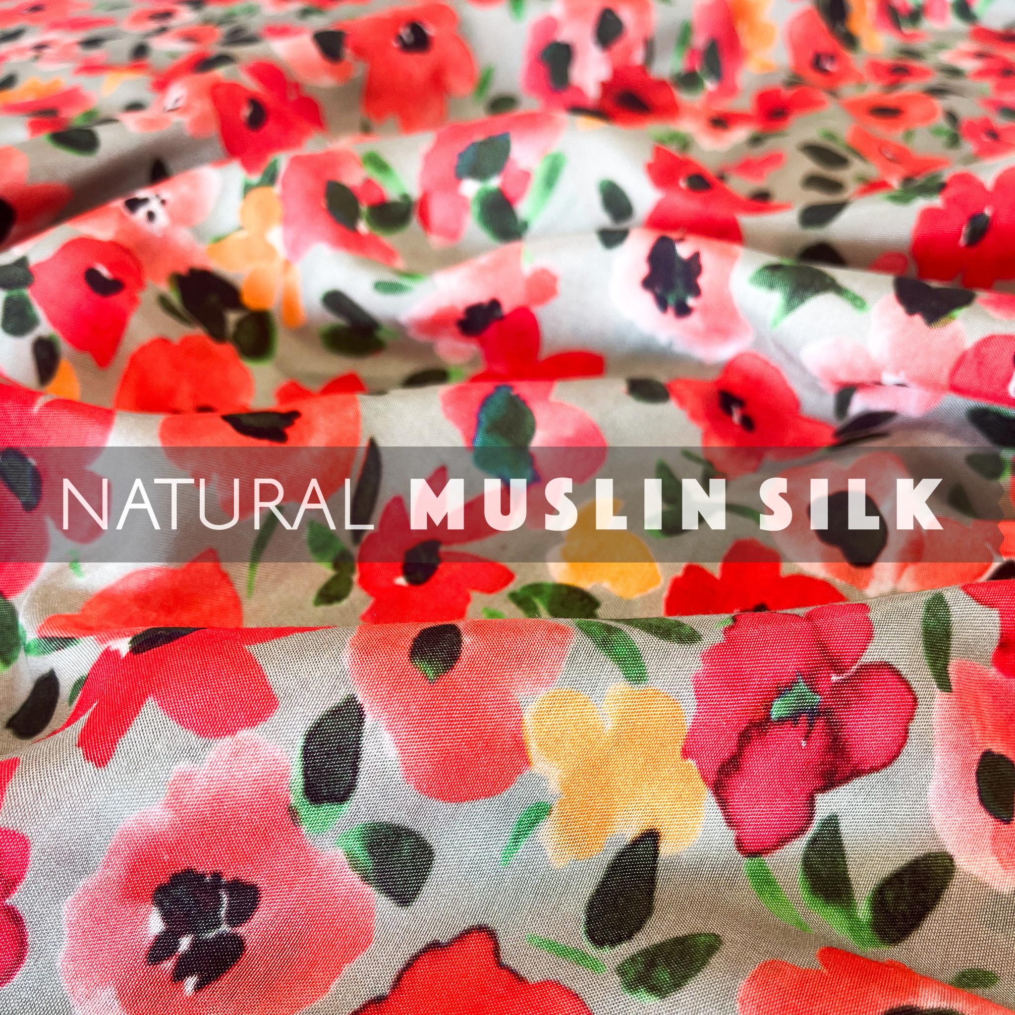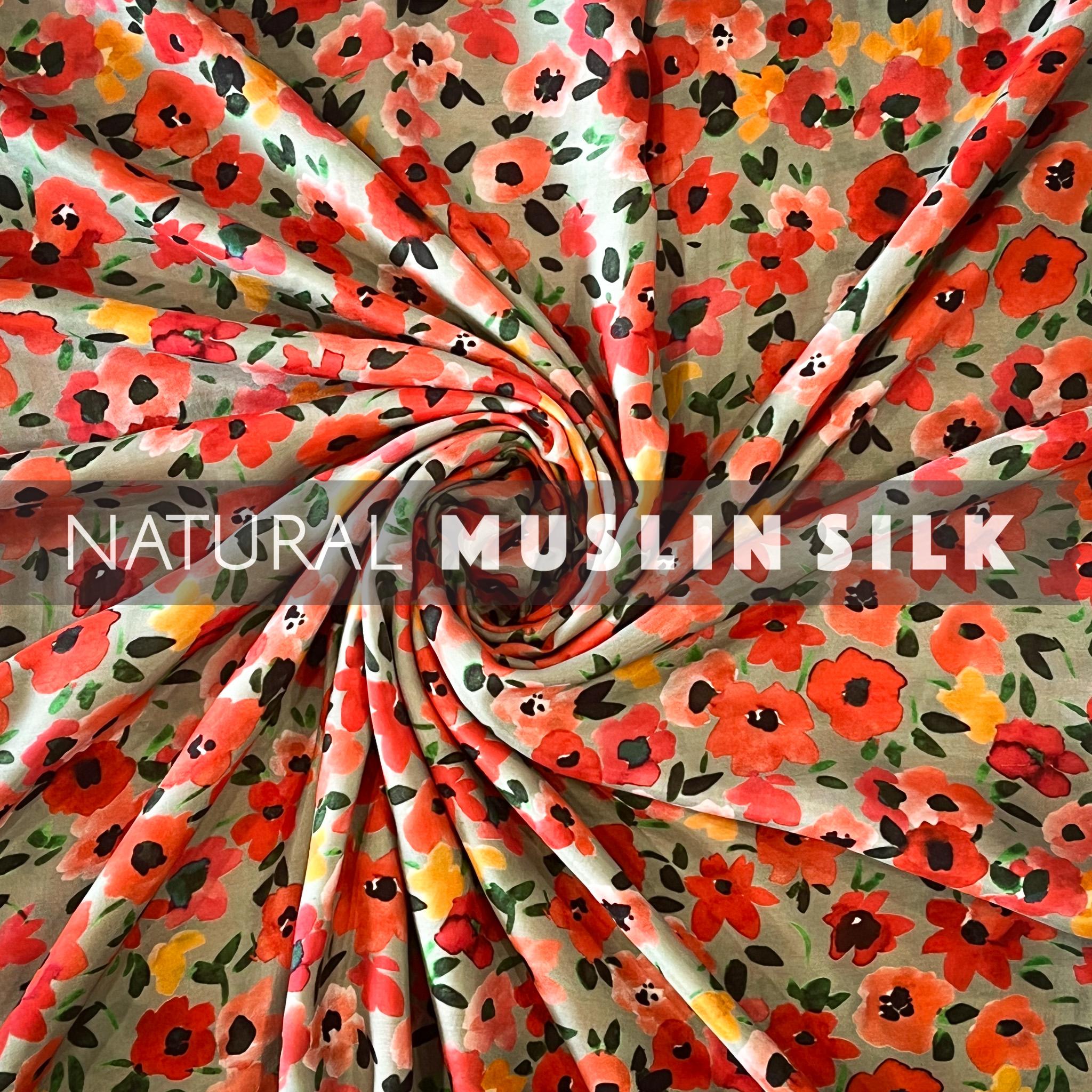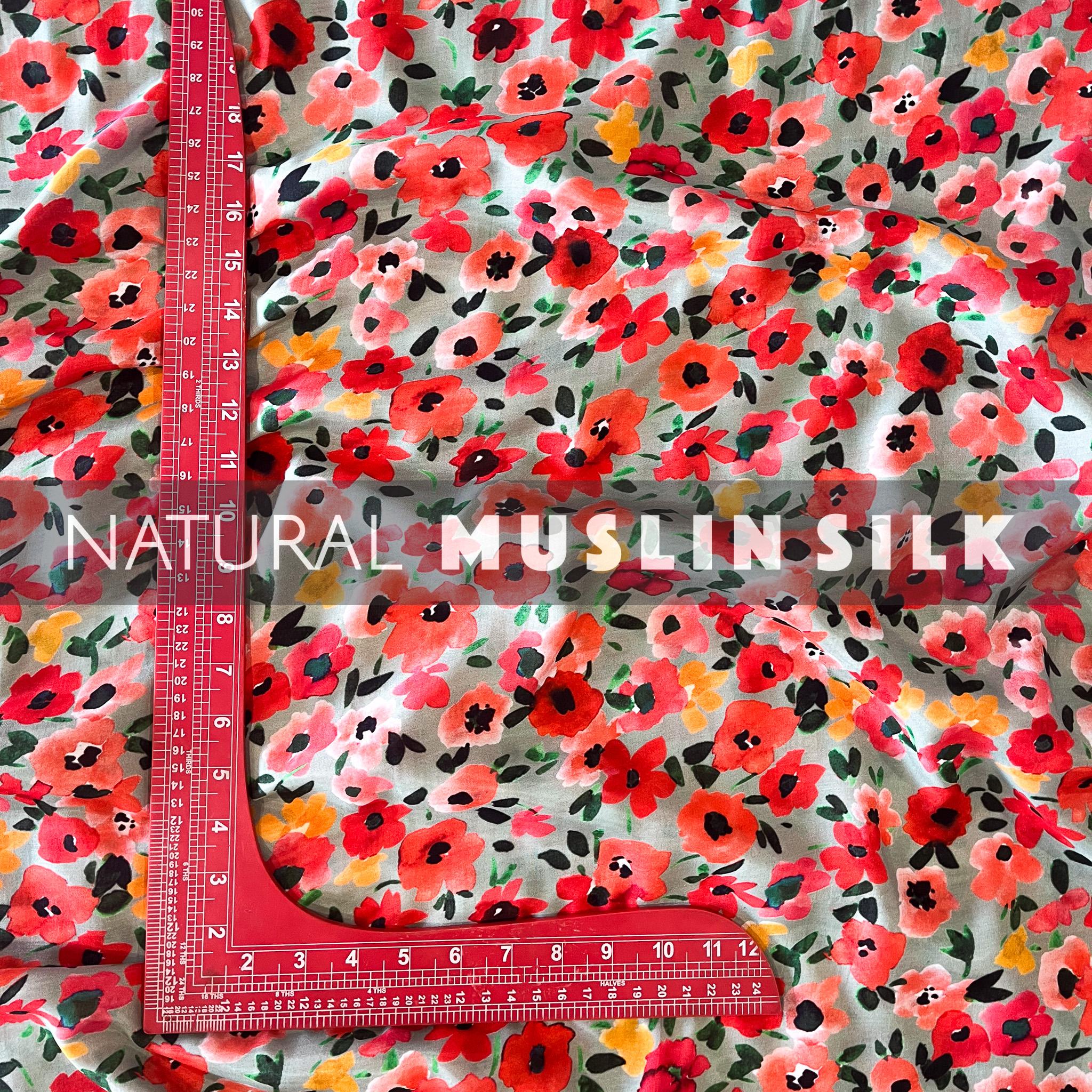 Multicolor Digital Floral Printed Natural Muslin Silk Fabric