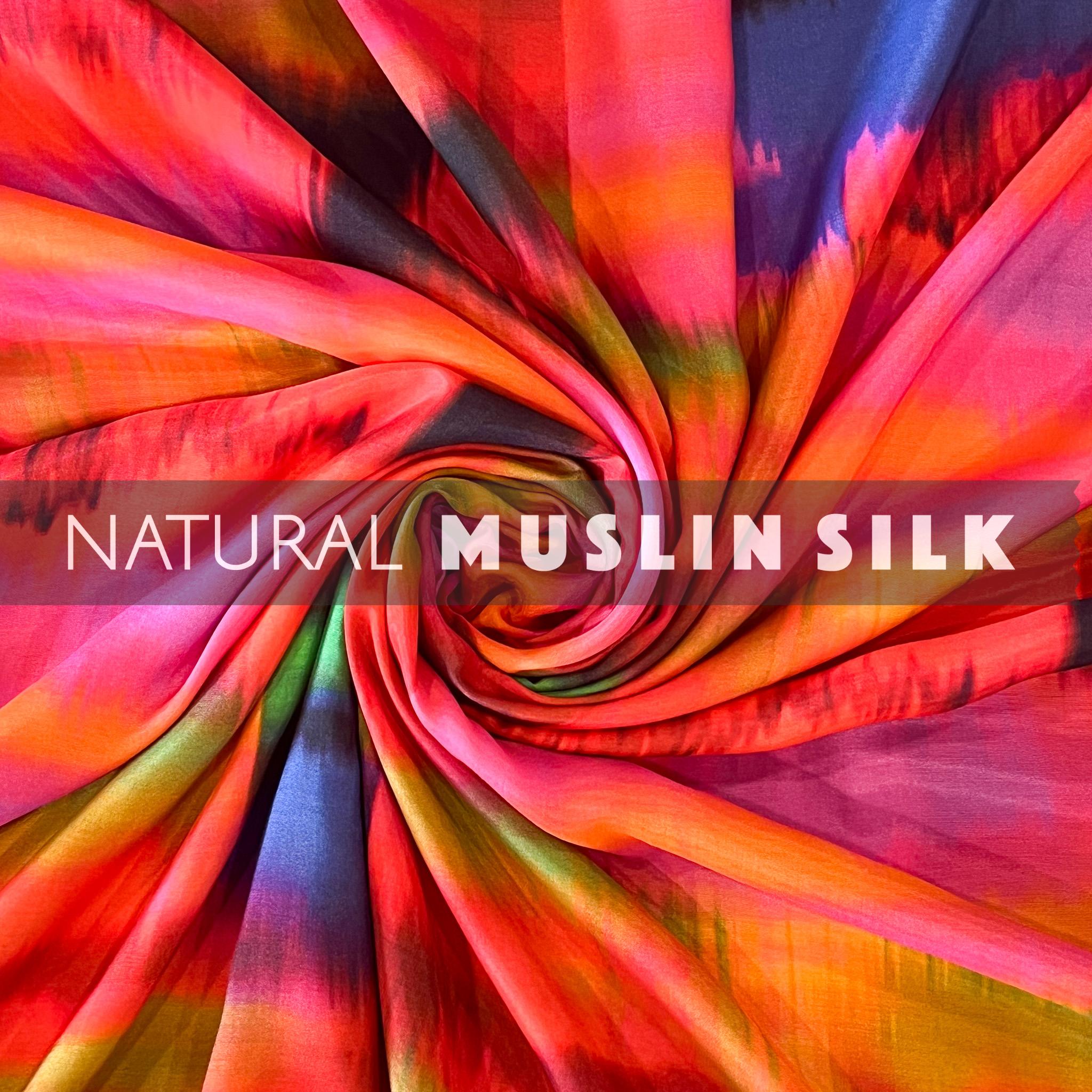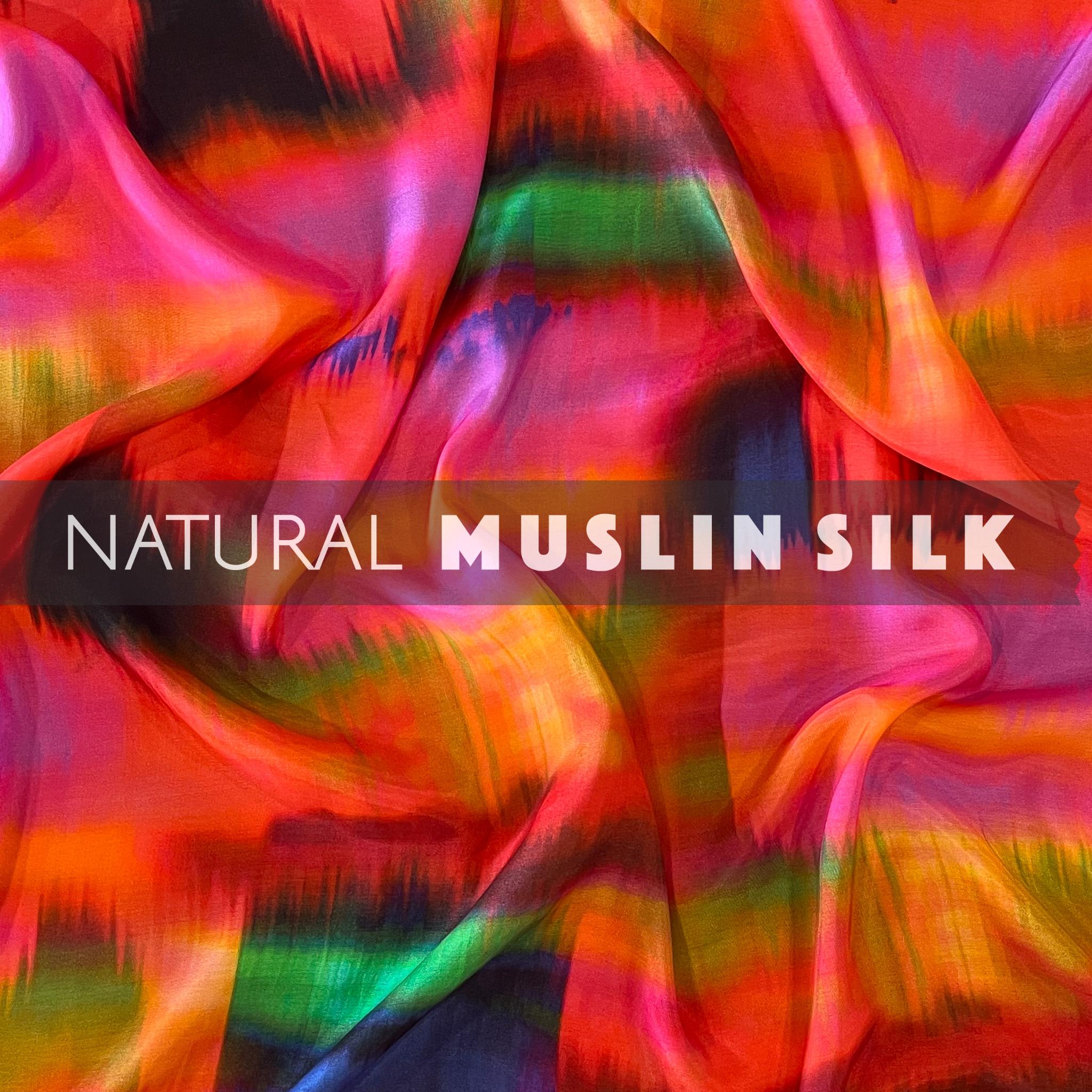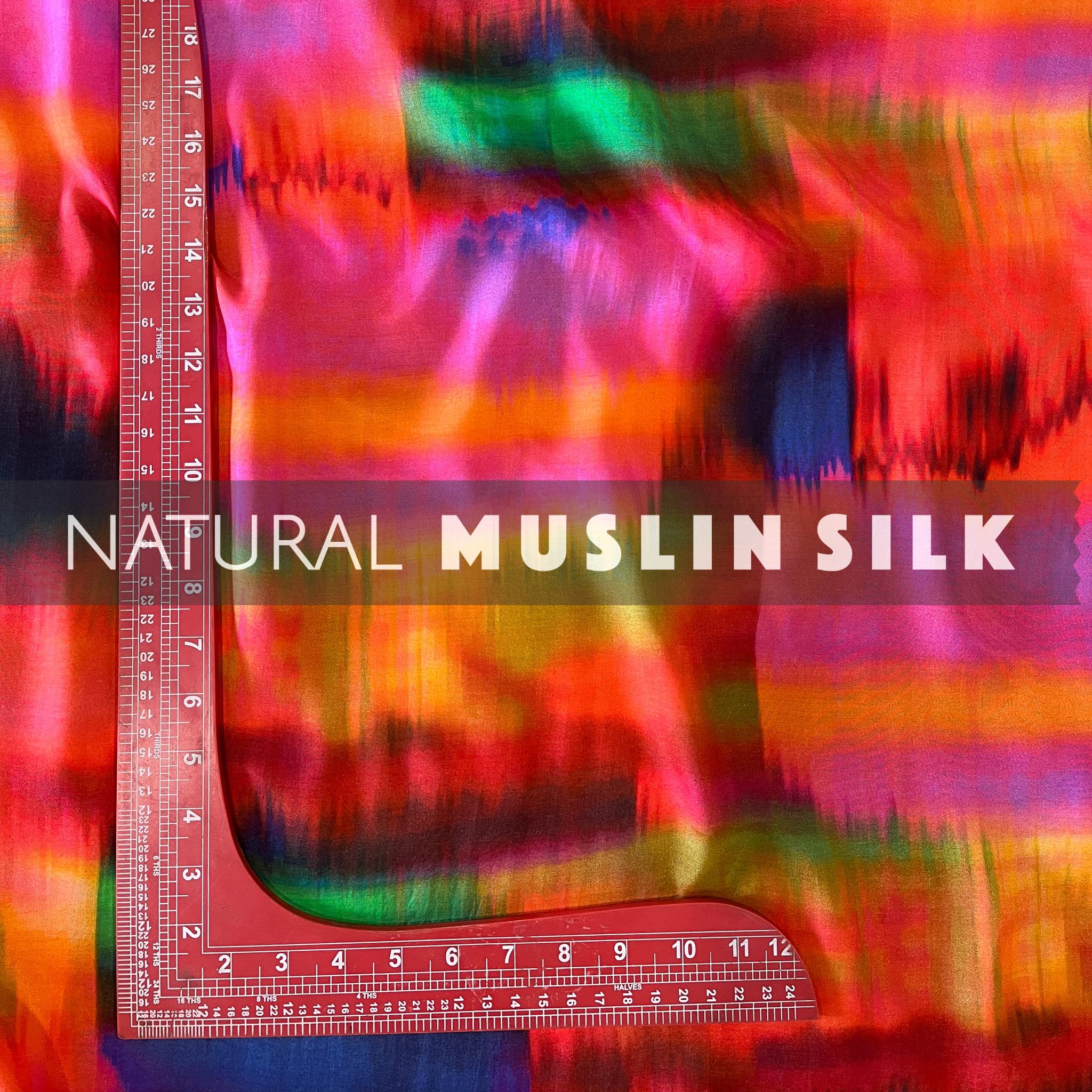 Multicolor Shaded Abstract Pattern Printed Natural Muslin Silk Fabric