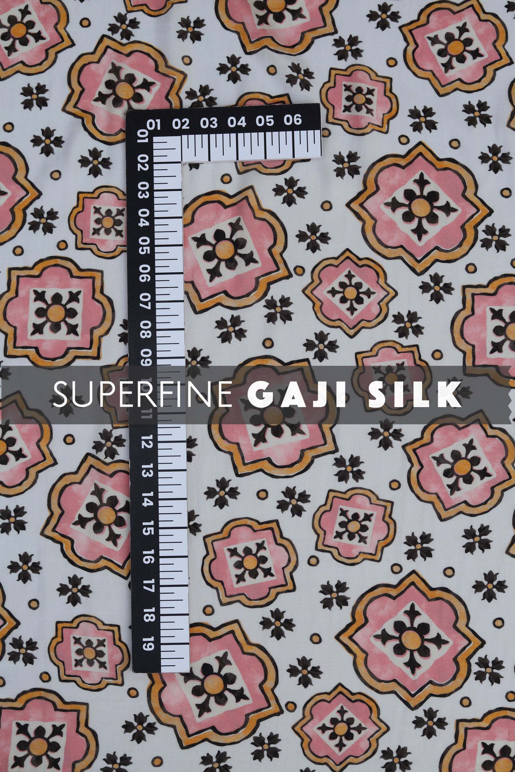 Pastel Off-White Traditional Printed Gaji Silk Fabric