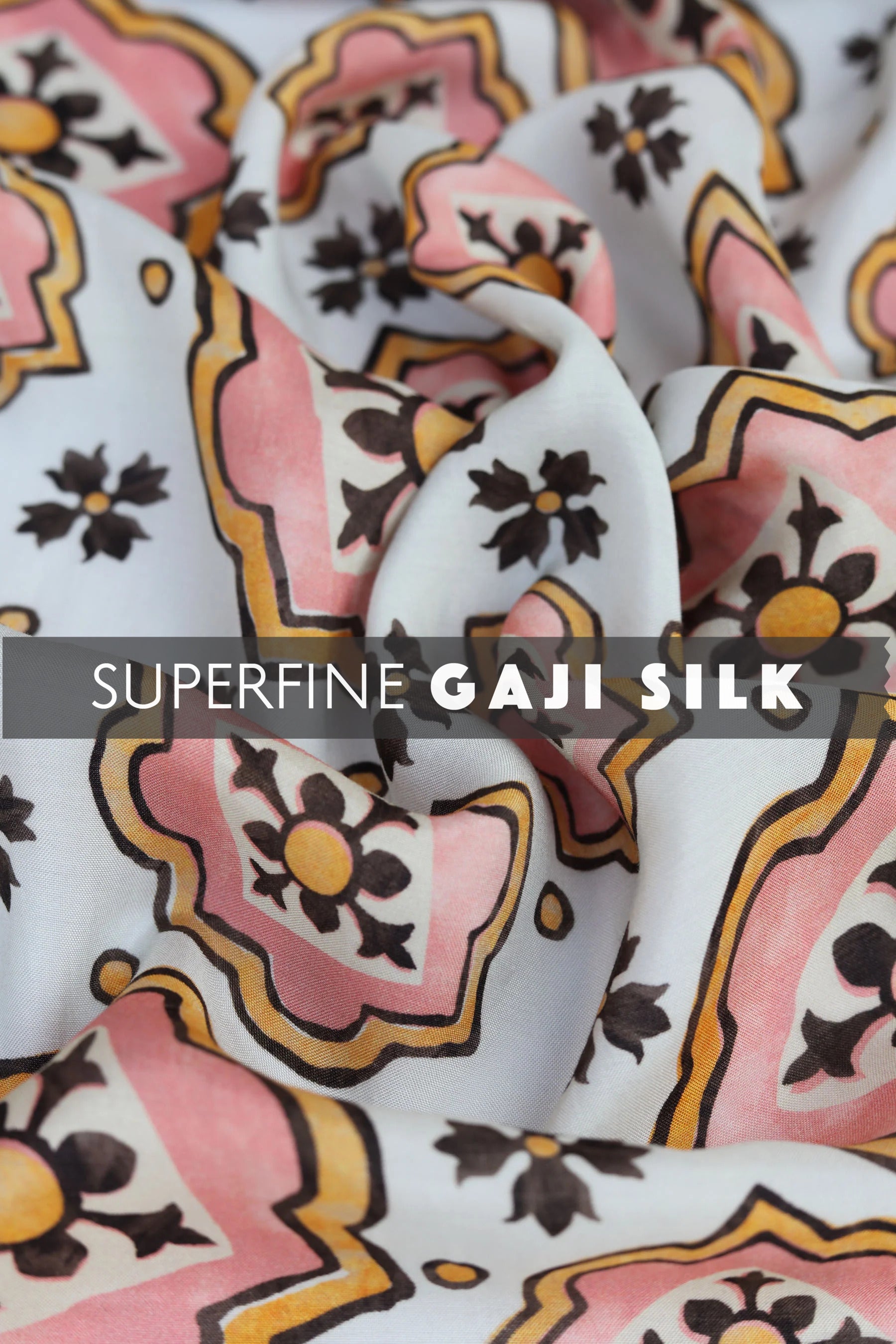 Discover the epitome of elegance with this pastel off-white traditional printed Gaji silk fabric. Premium in quality, it boasts a natural sheen and a high glossy surface, offering a lustrous finish and a luxurious softness that effortlessly drapes with fluidity. Embrace its sustainable, nature-based essence while creating captivating occasion wear co-ord sets, enchanting sarees, alluring dupattas, as well as graceful tops, shirts, and dresses that speak of timeless sophistication.