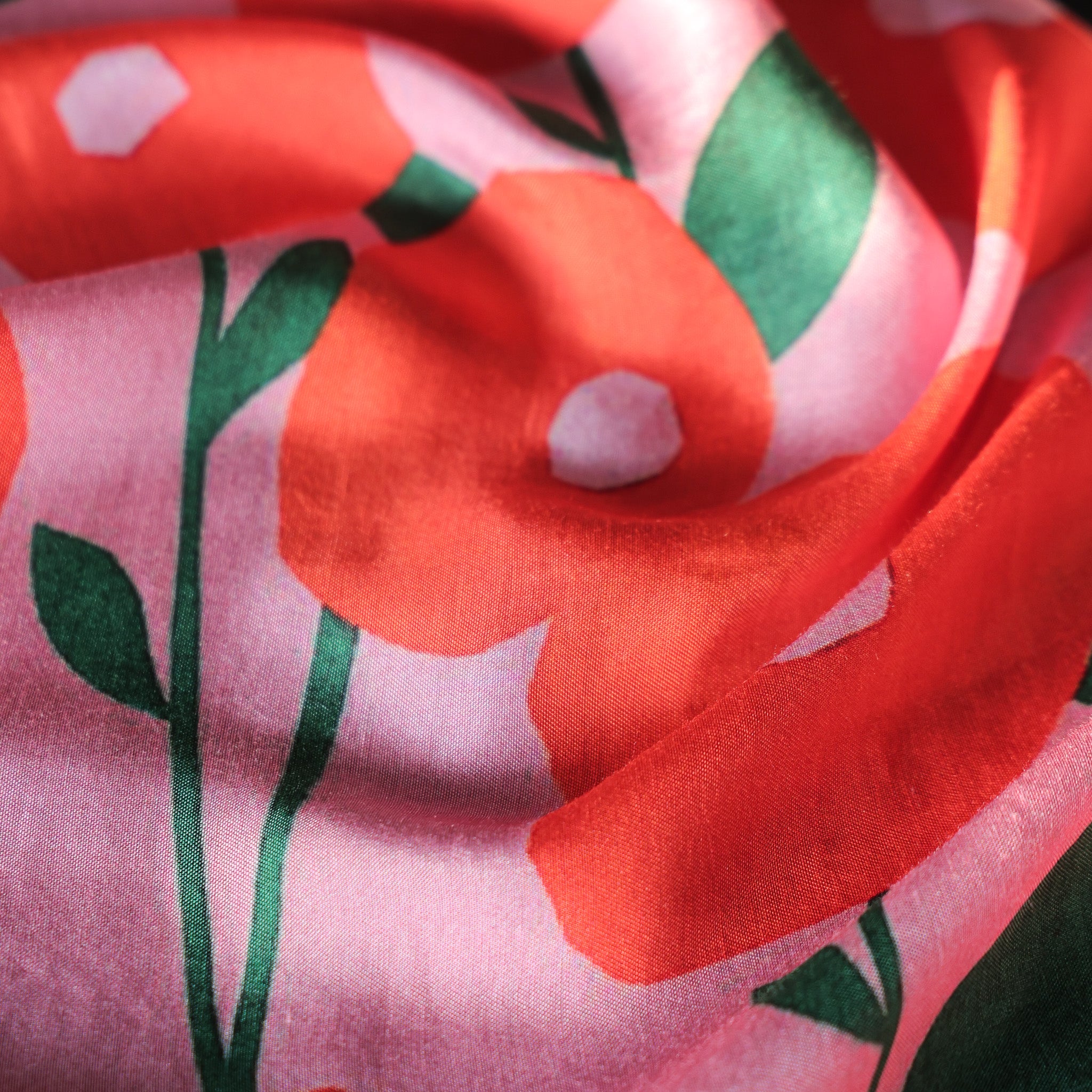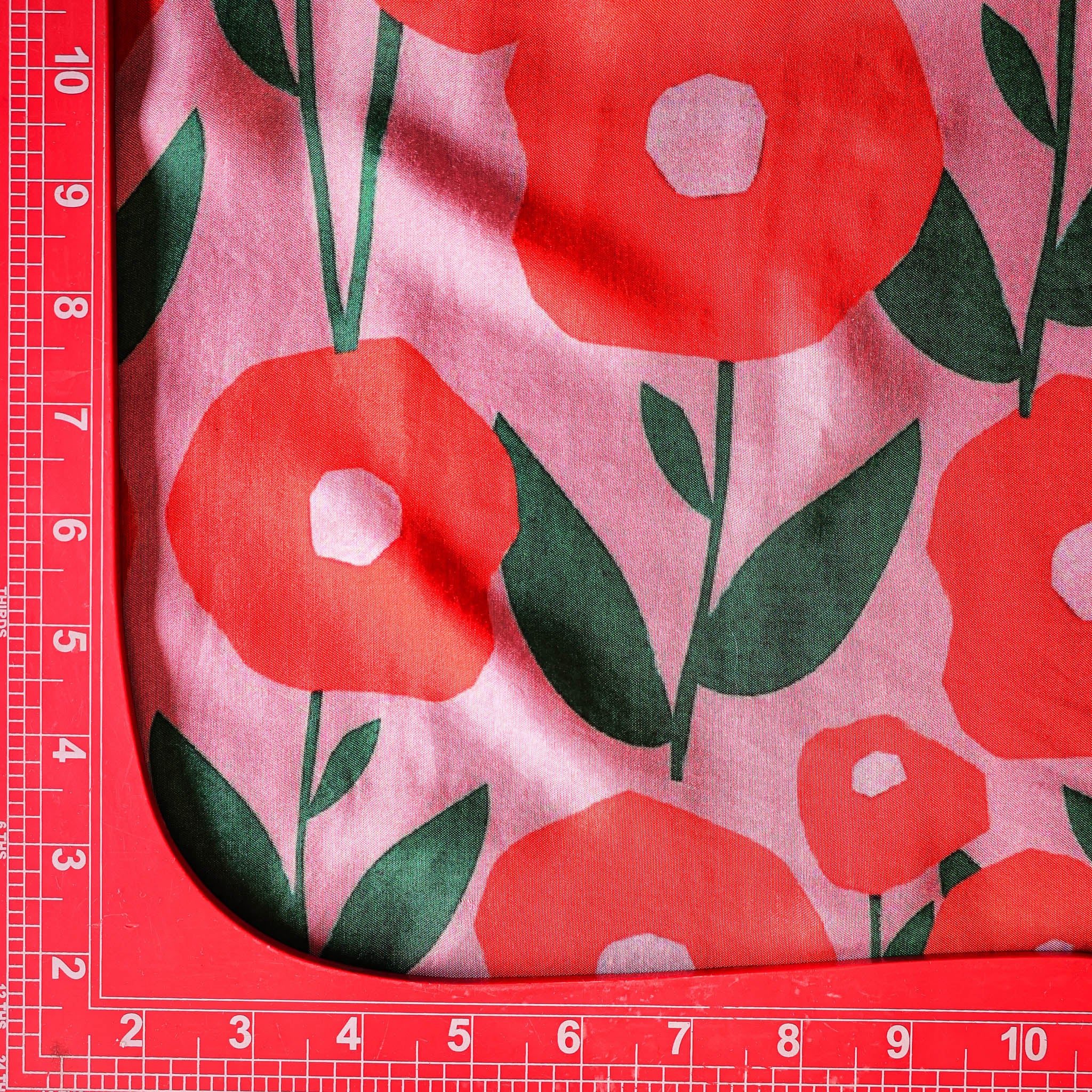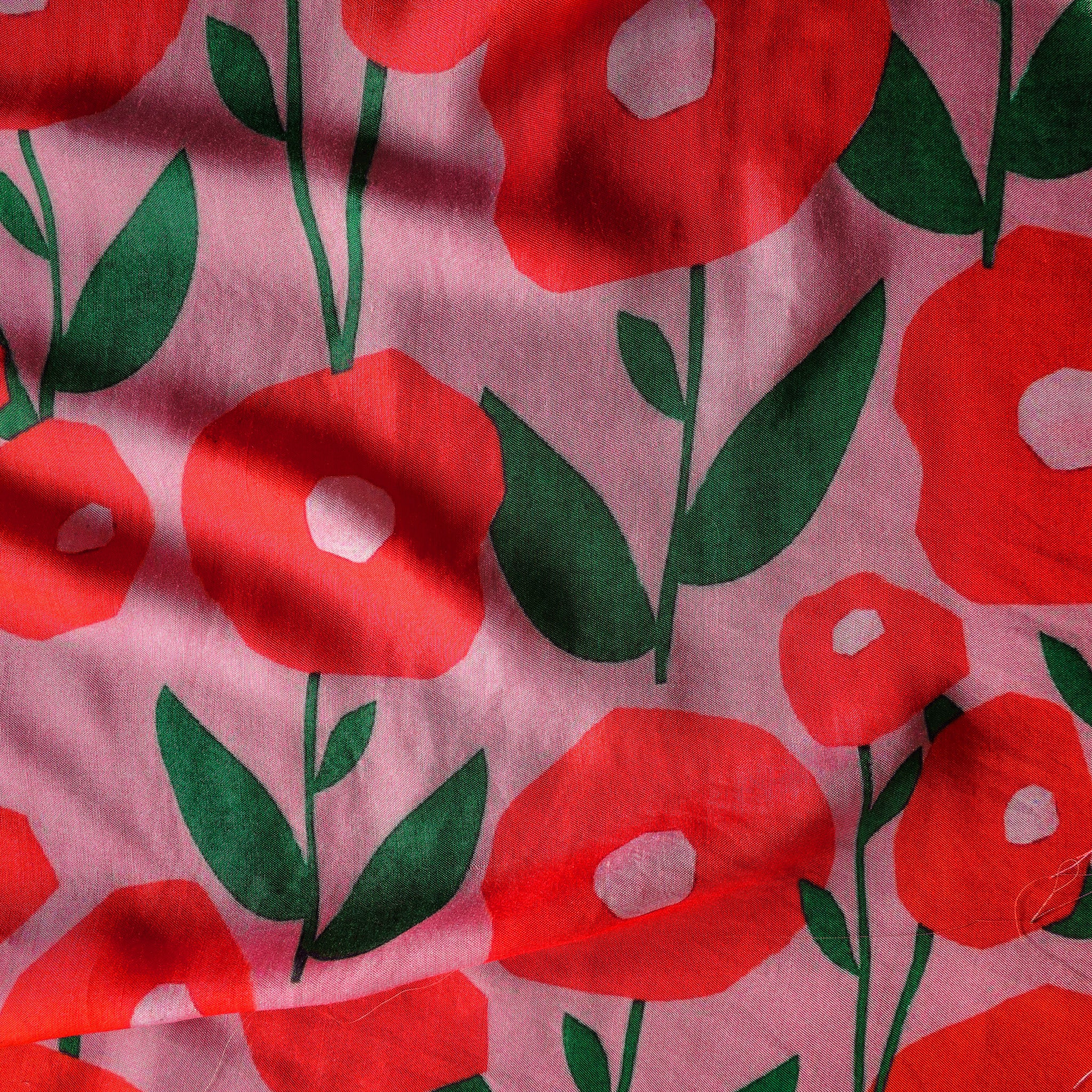 Pink Blotchy Floral Pattern Printed Natural Muslin Silk Fabric