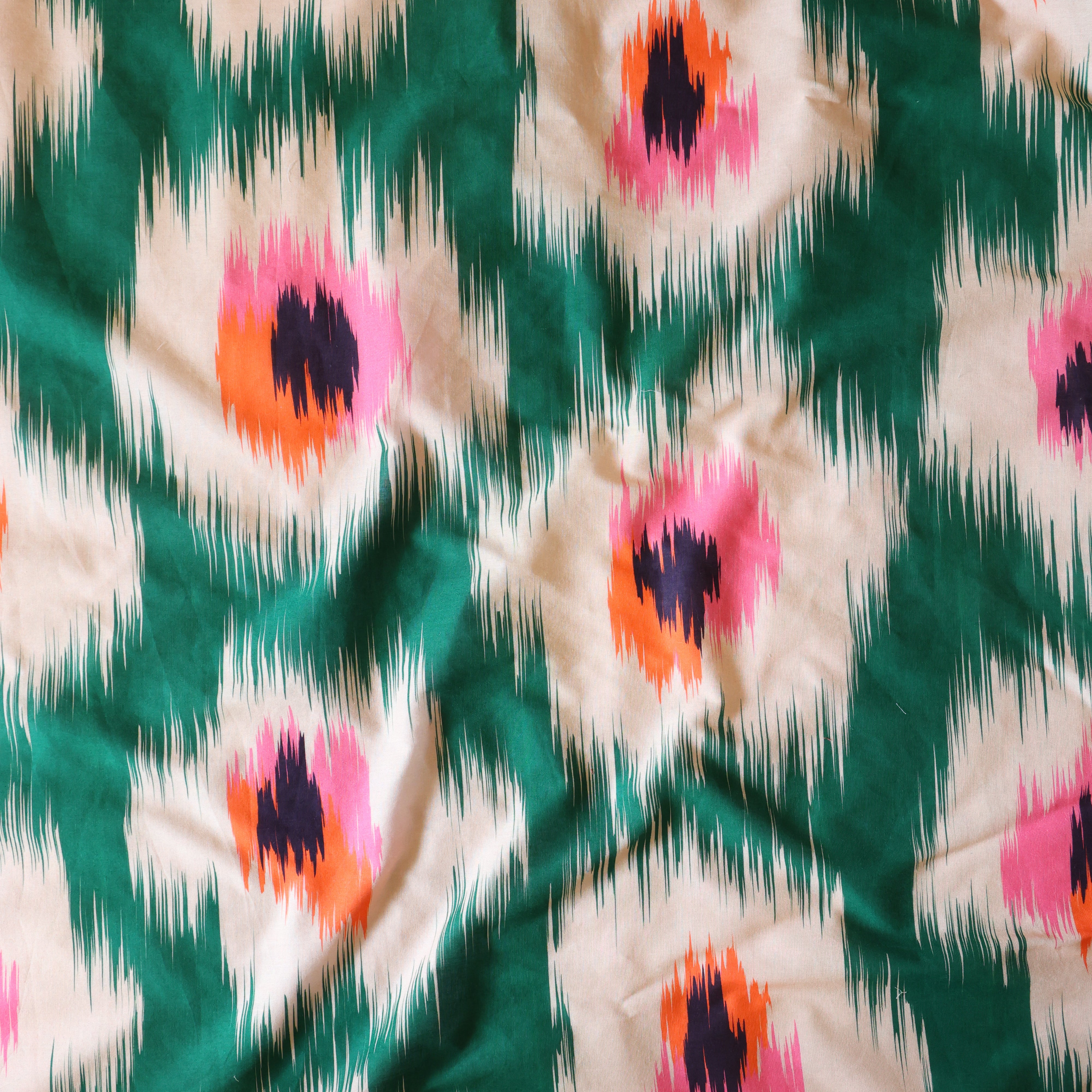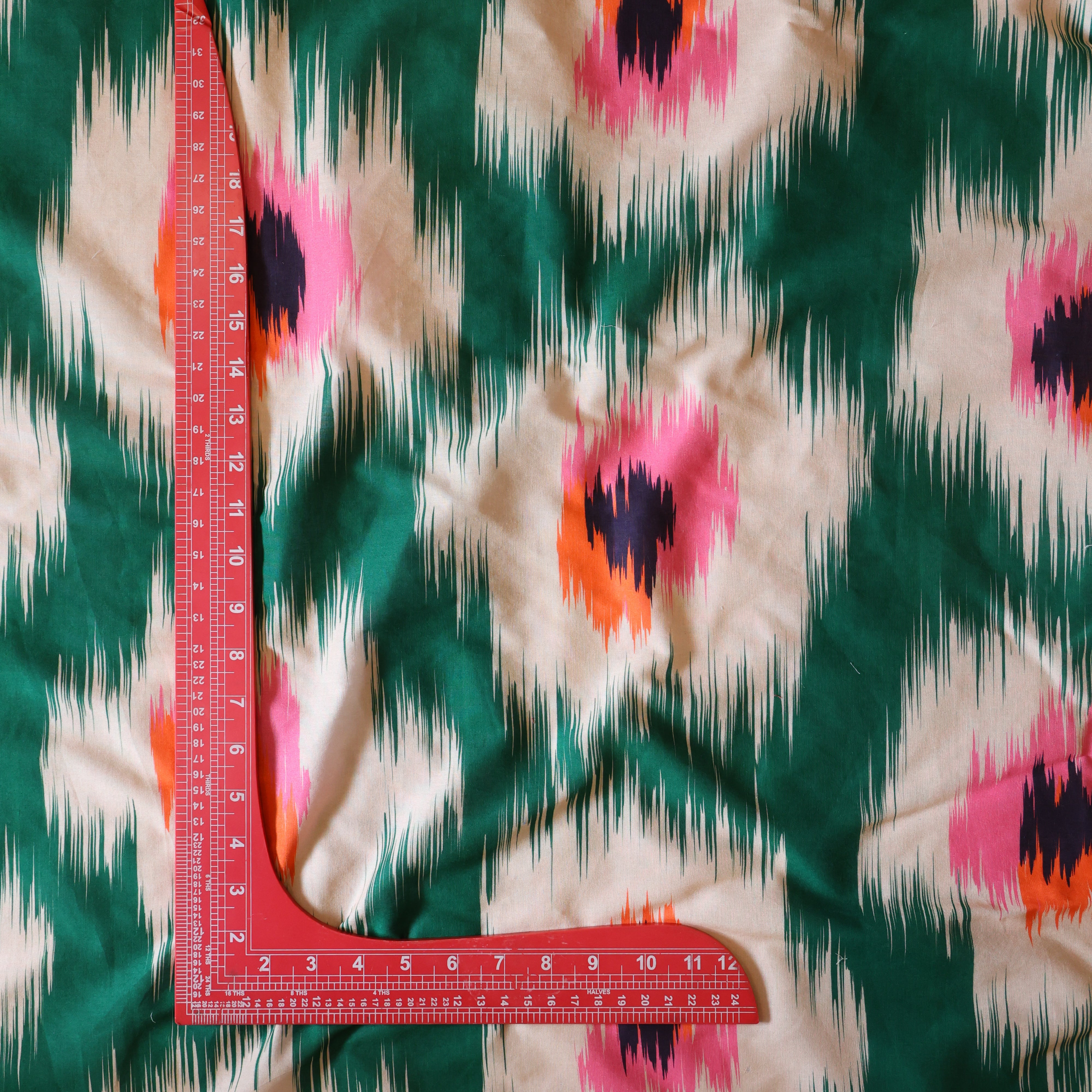 Pure Cotton Emerald Green Ikat Inspired Pattern Printed Fabric