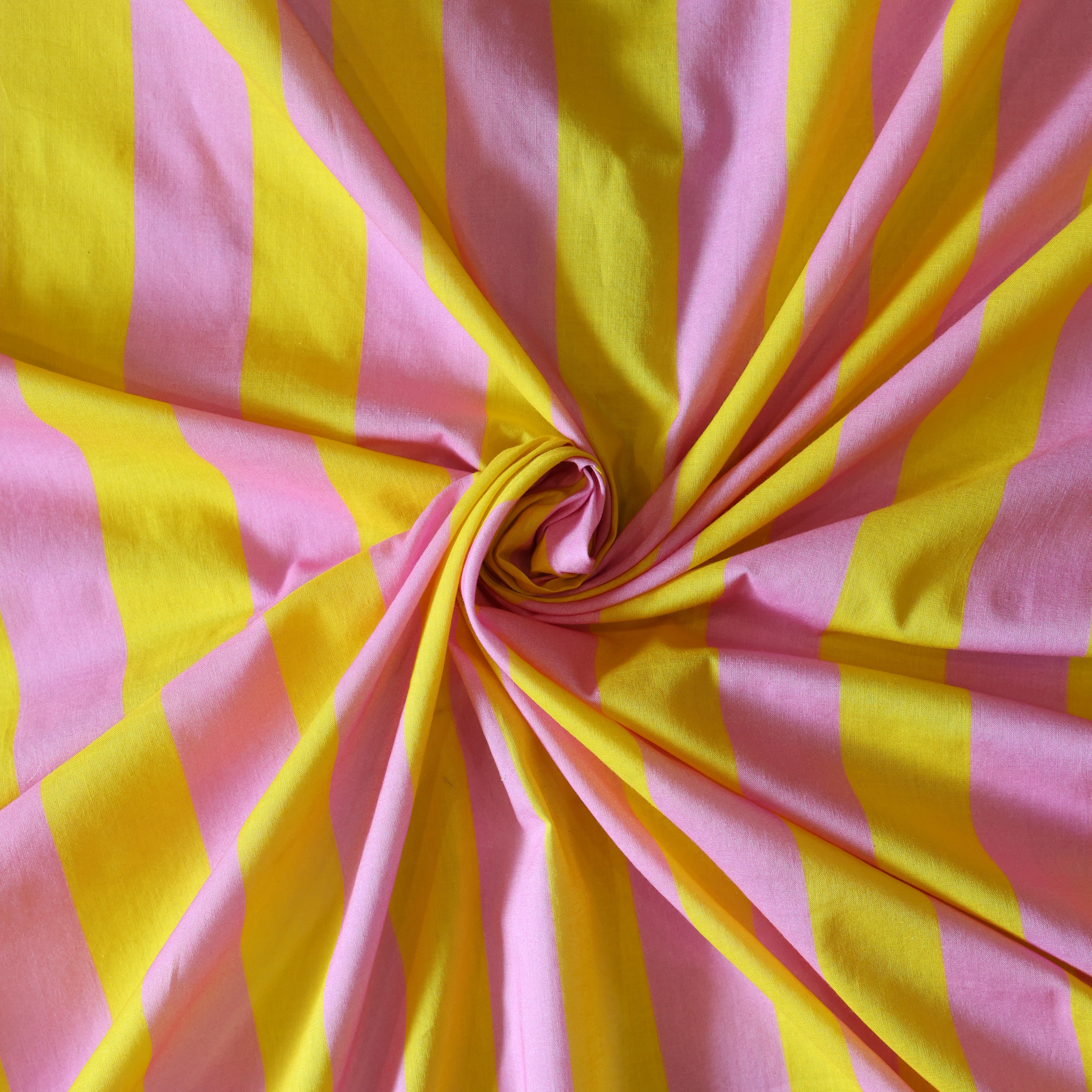 Pure Cotton Pink Yellow Stripe Pattern Printed Fabric