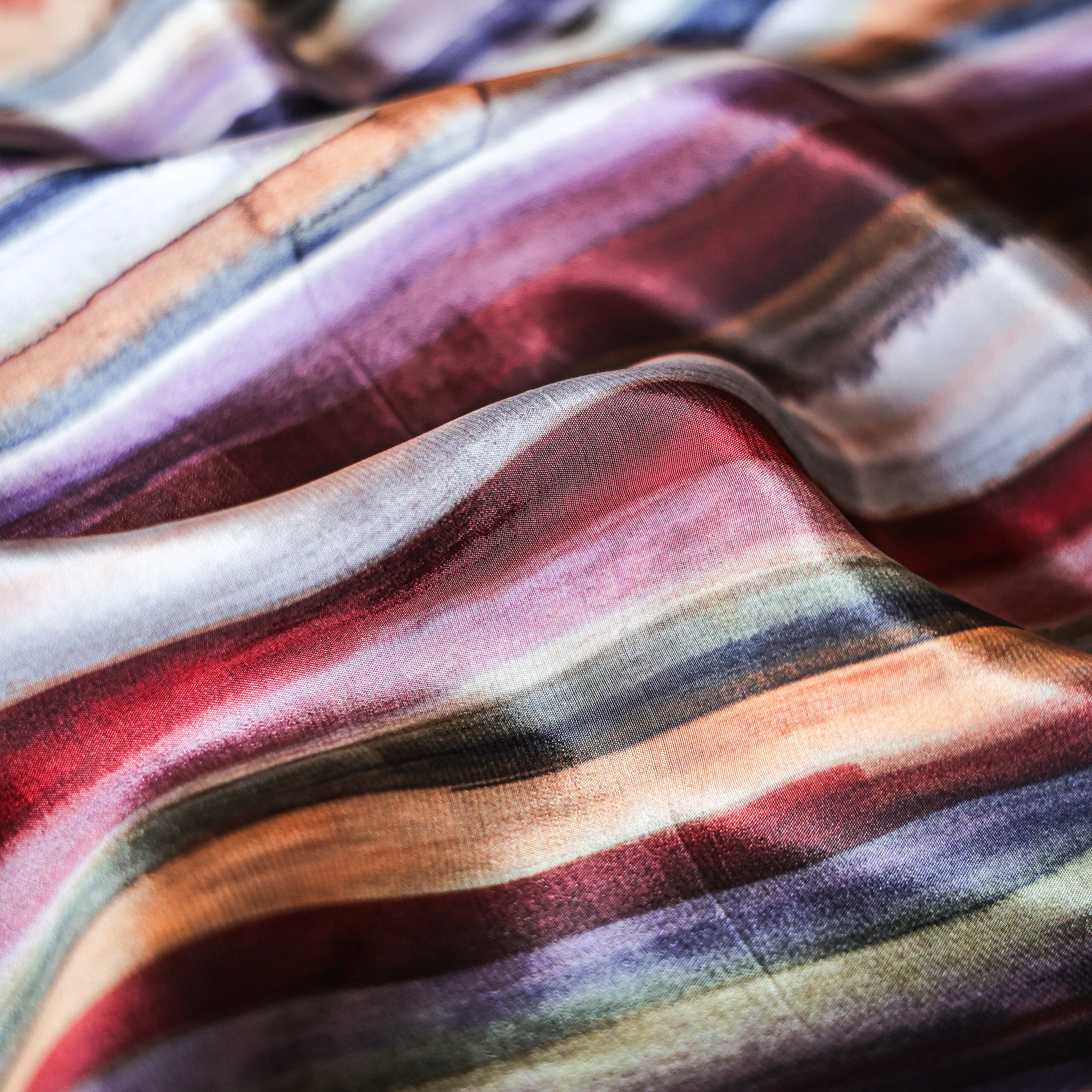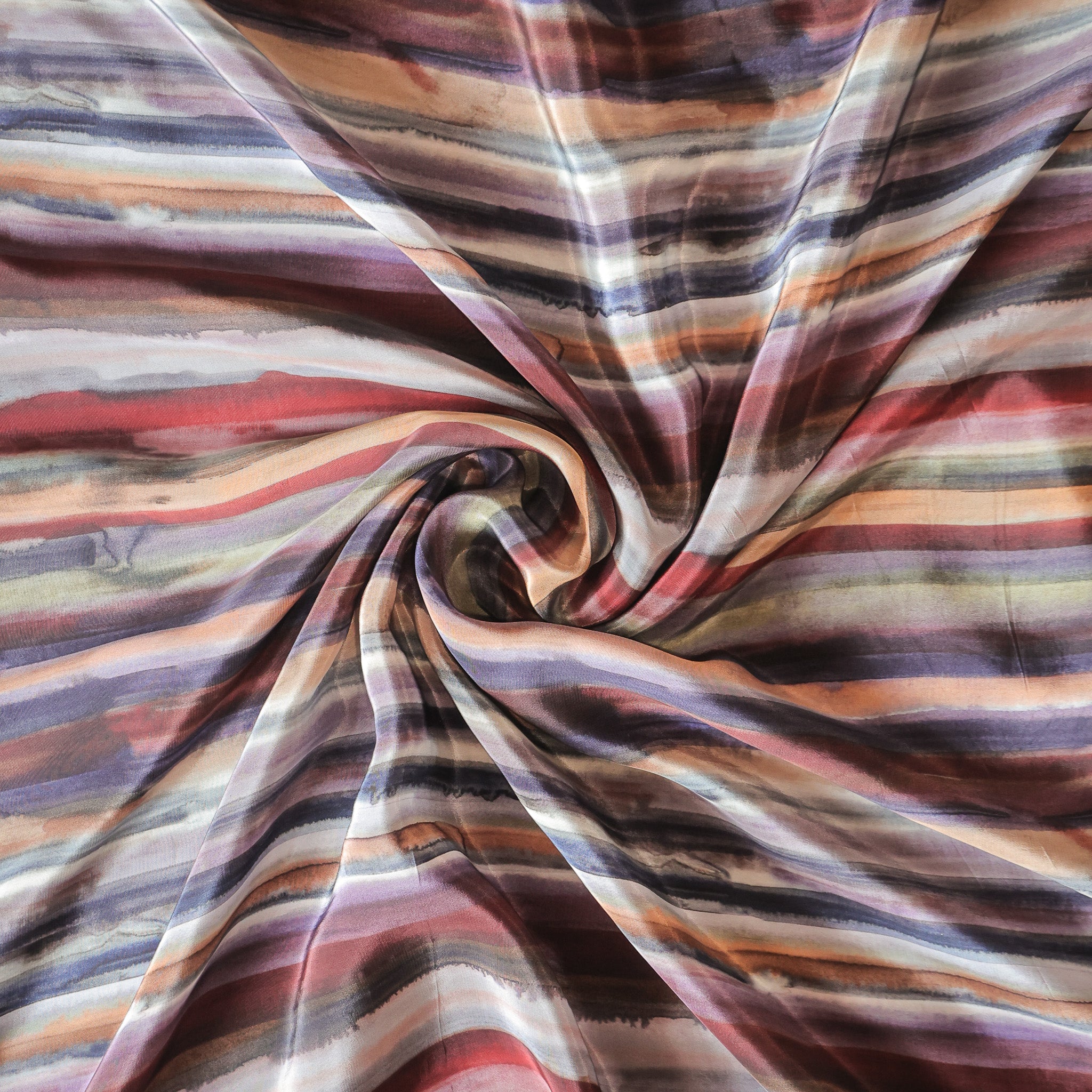 Watercolour painted vertical stripe pattern printed Natural Crepe Silk Fabric